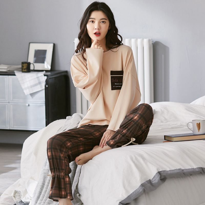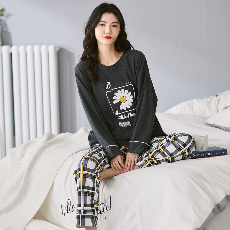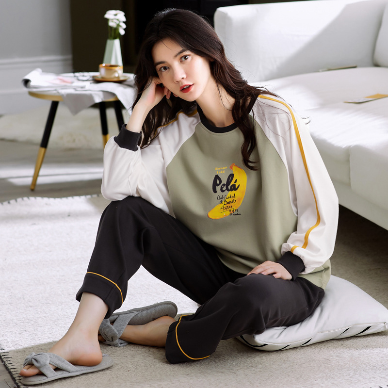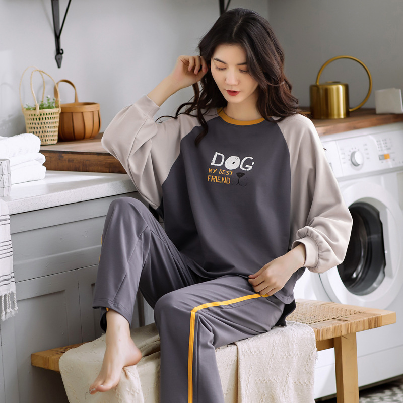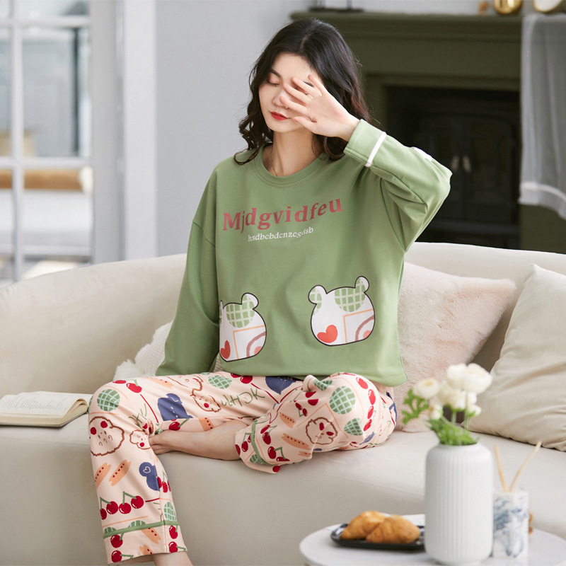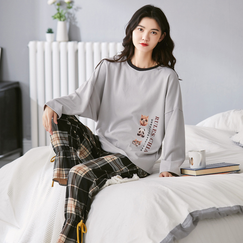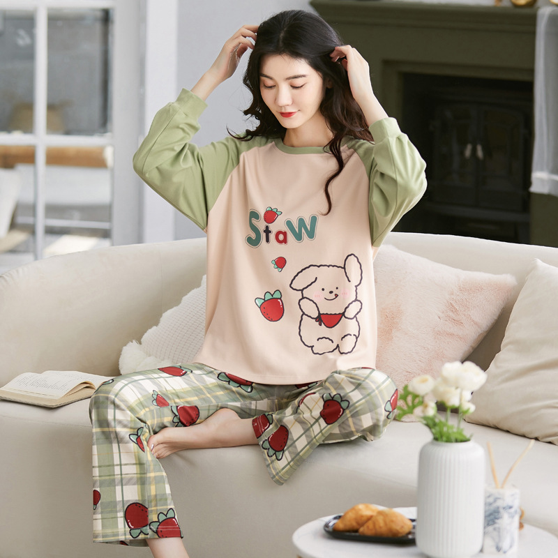 卡通睡衣女秋棉质套装春秋冬季圆领套头长袖宽松加大码家居服学生