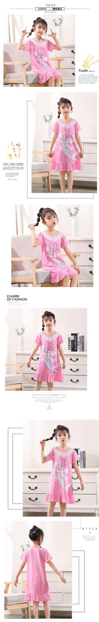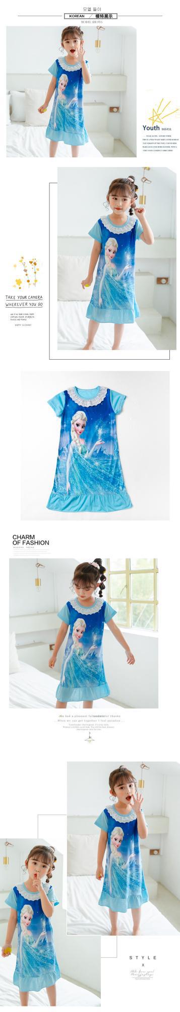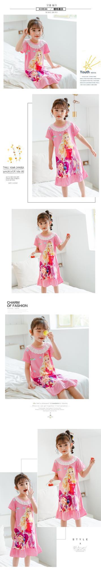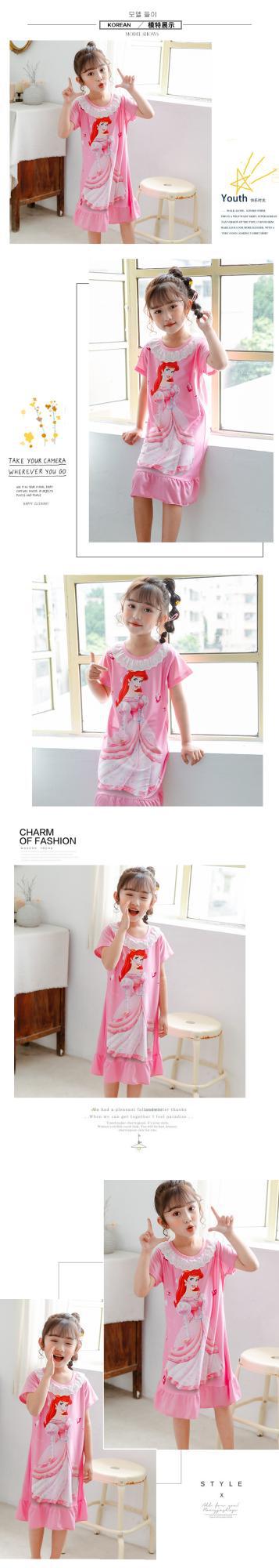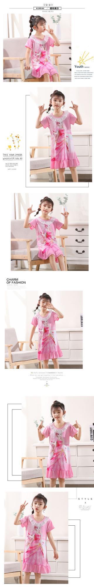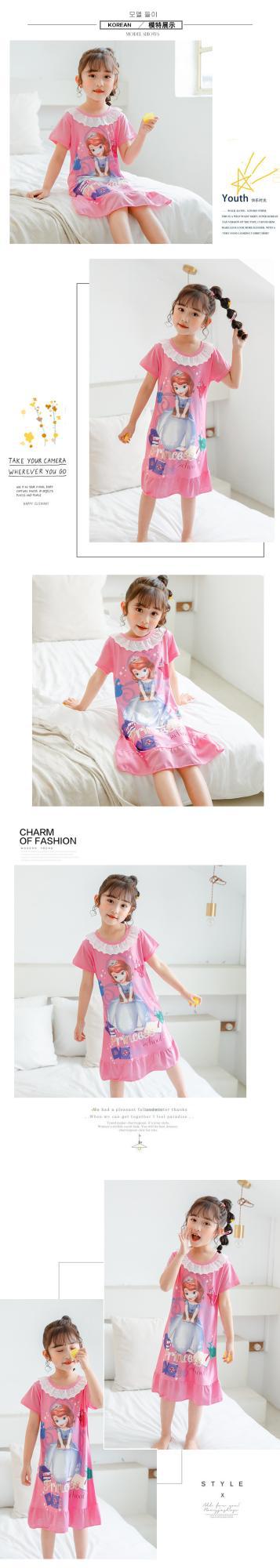 新款夏季薄款儿童睡裙 圆领短袖荷叶边公主印花甜美女童家居服