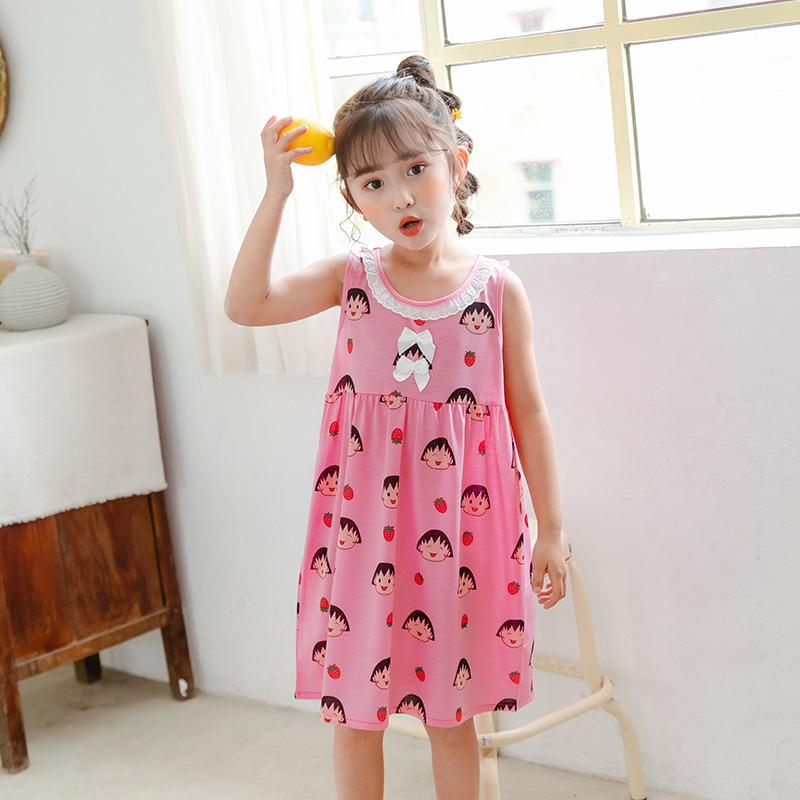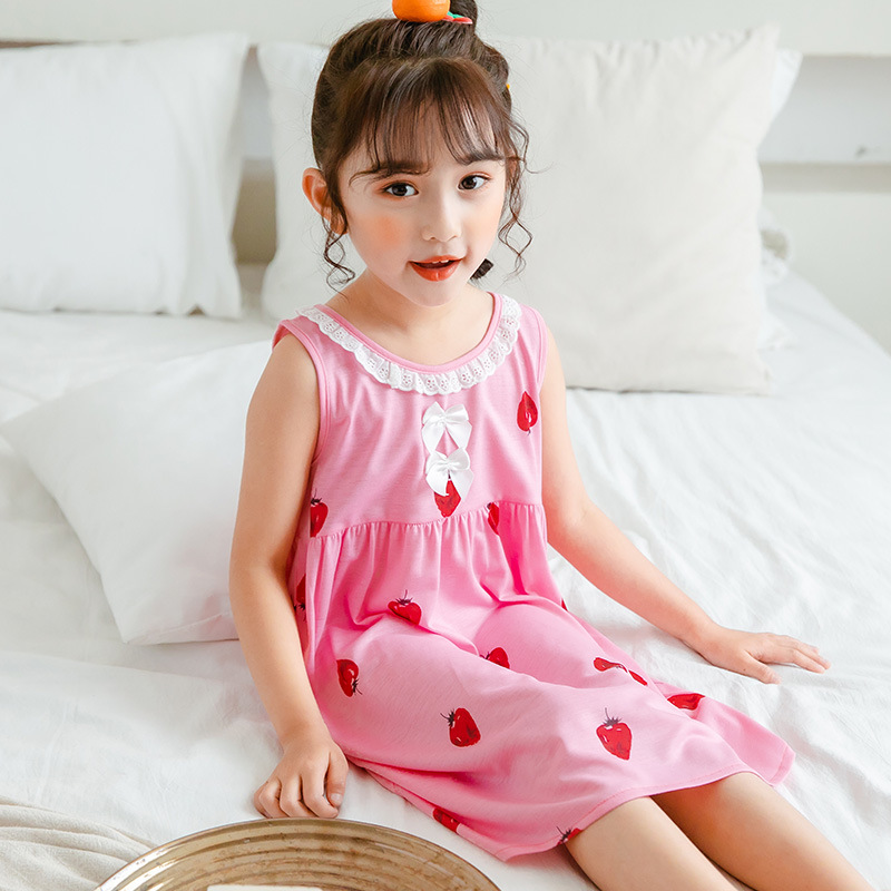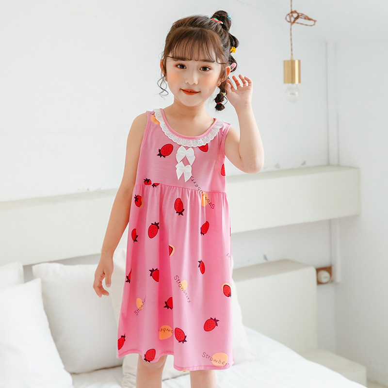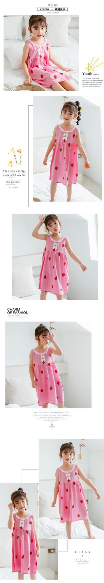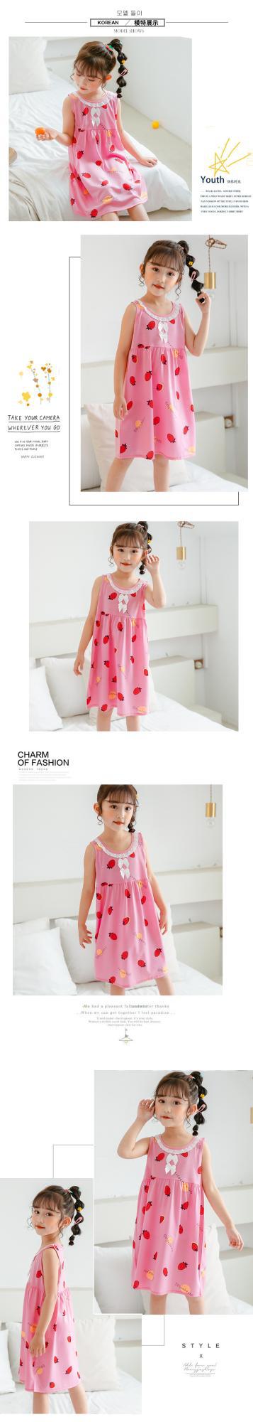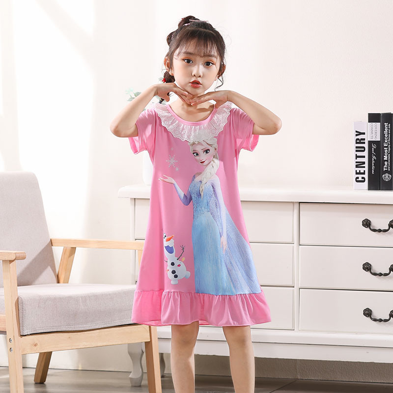 新款夏季薄款儿童睡裙 圆领短袖荷叶边公主印花甜美女童家居服