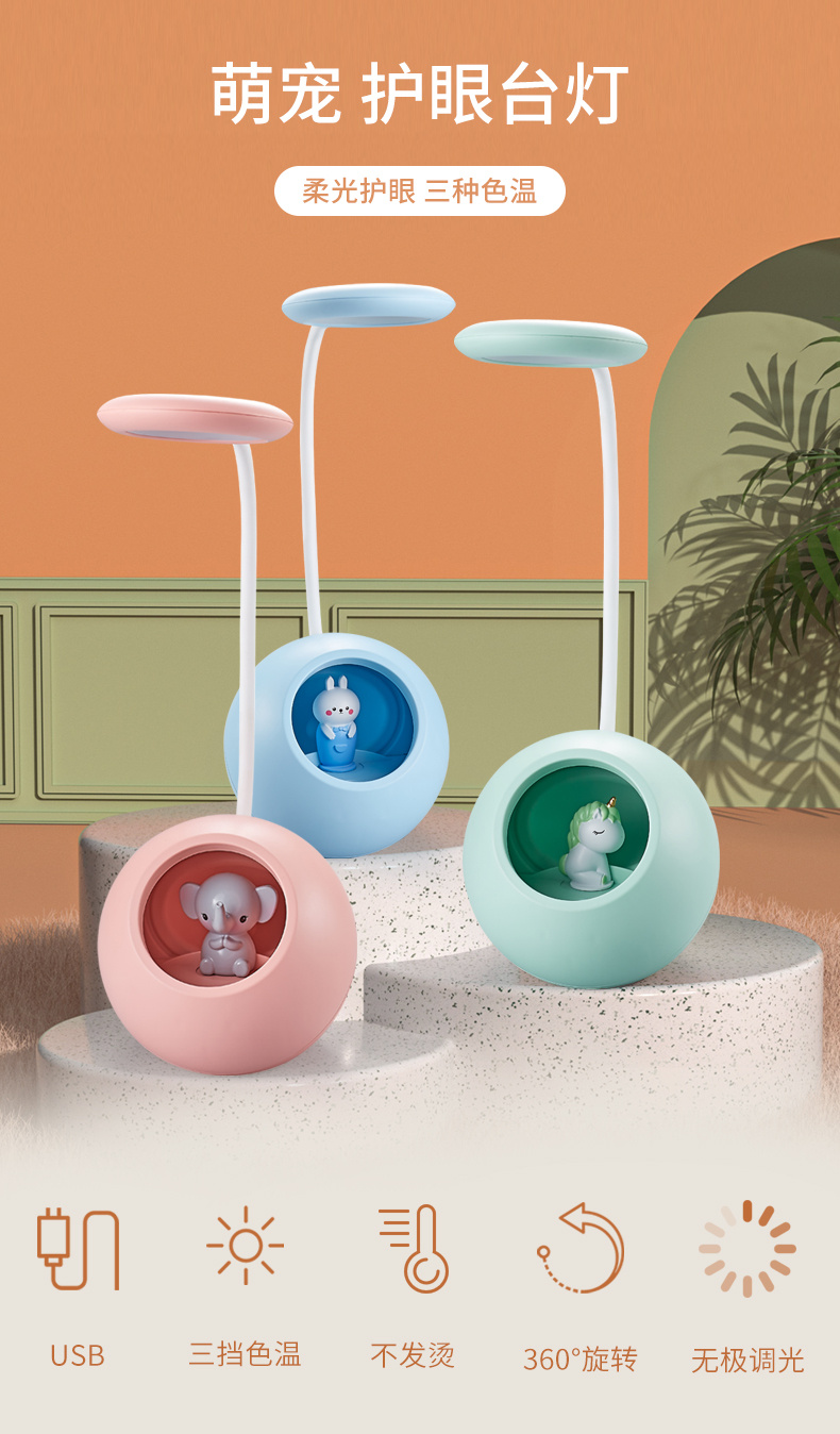 萌宠可爱充电插电台灯卧室学生宿舍护眼书桌学习专用防近视床头灯