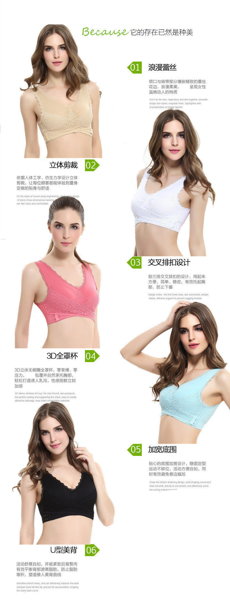 前搭扣交叉排扣斜扣运动内衣文胸罩无钢圈女士调整型背心少女聚拢
