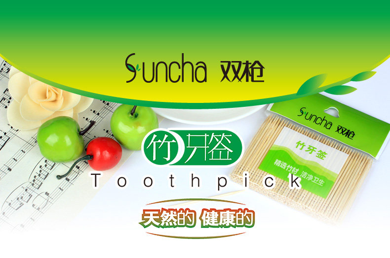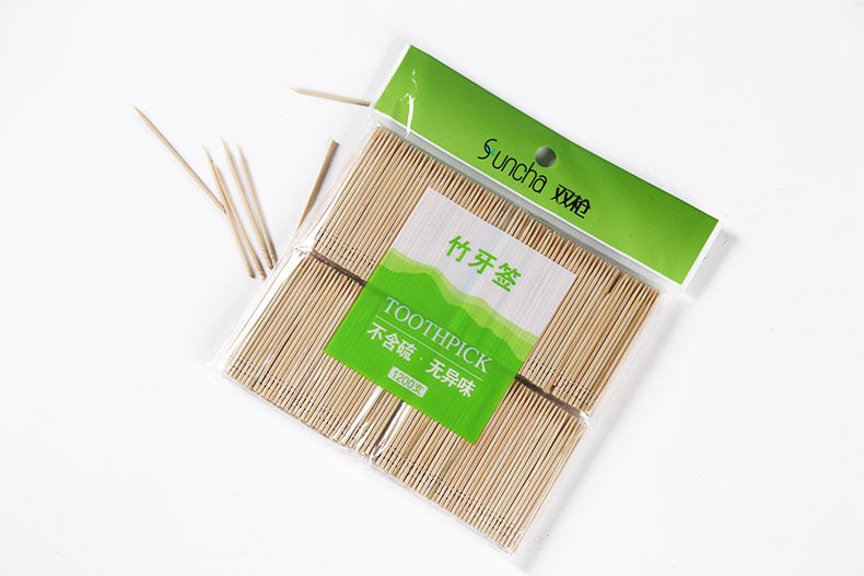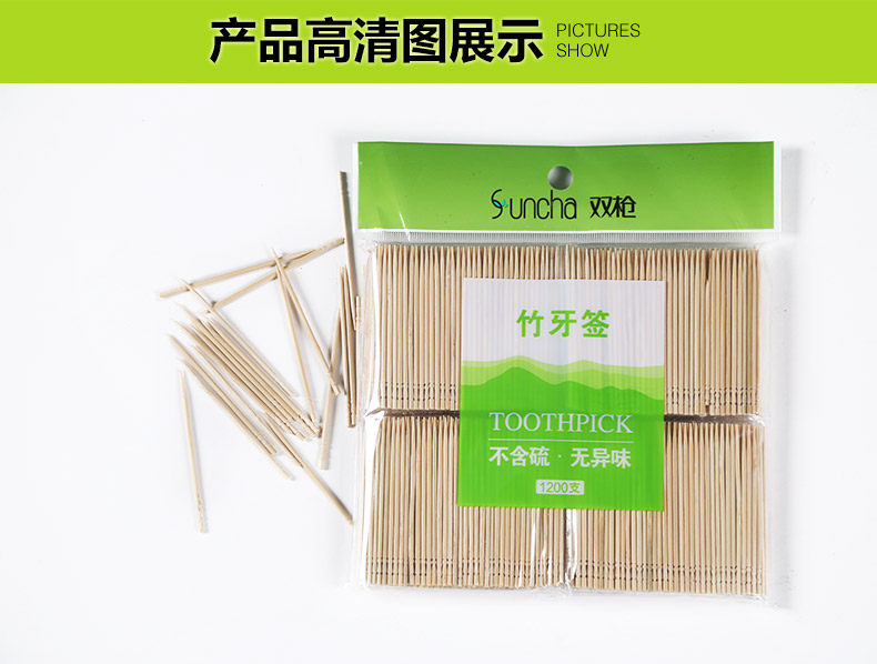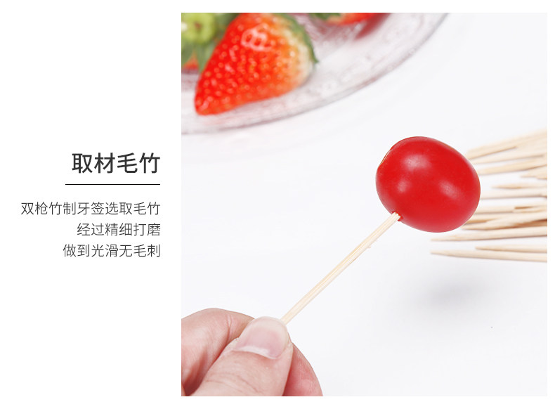 双枪天然环保竹牙签酒店家用卫生单头点心水果一次性签 1200支装