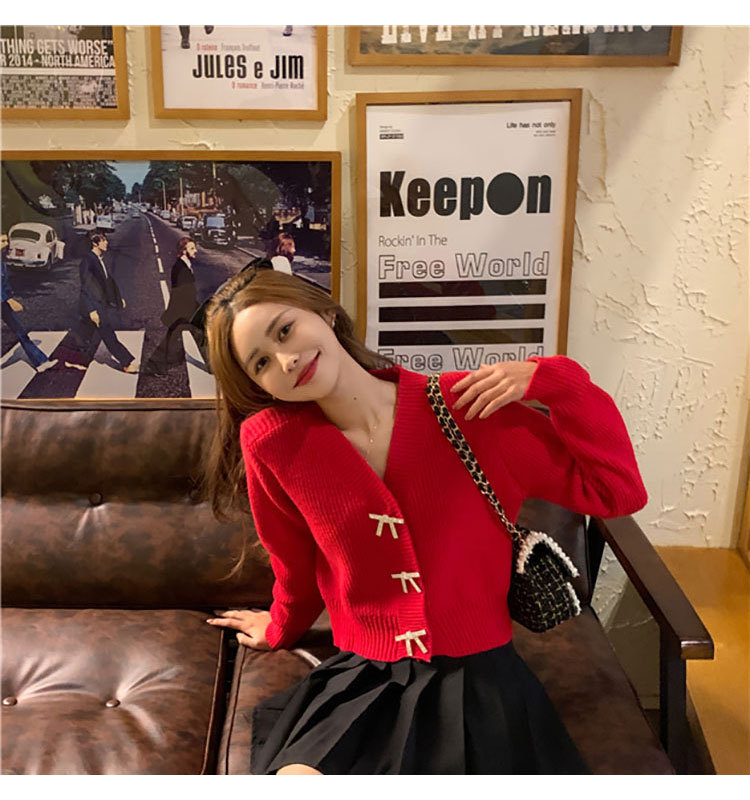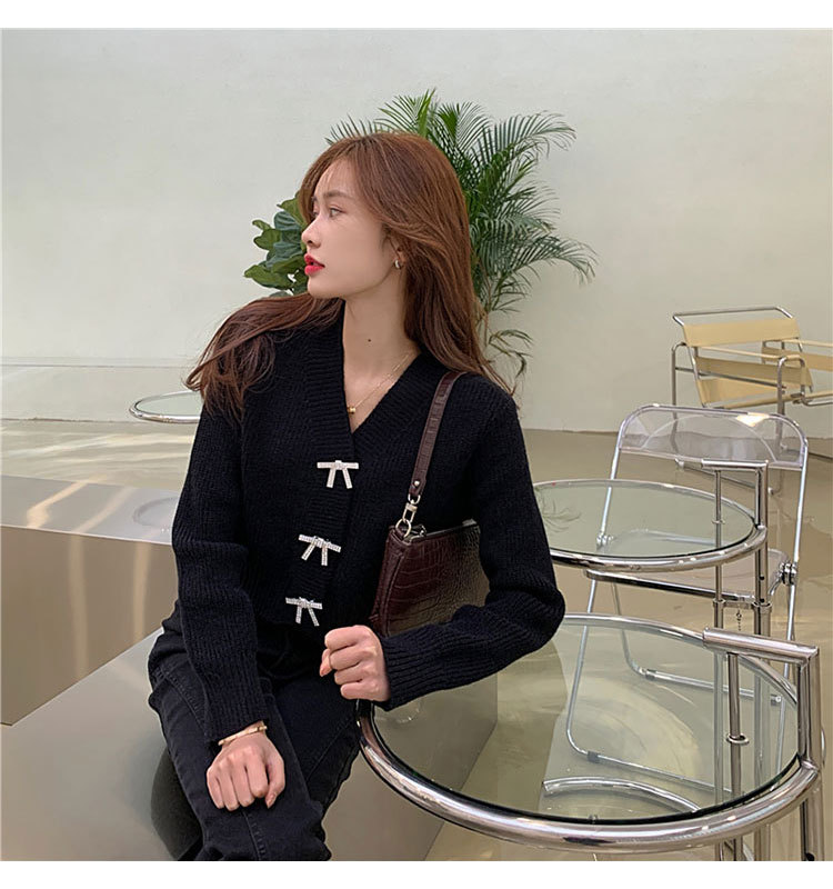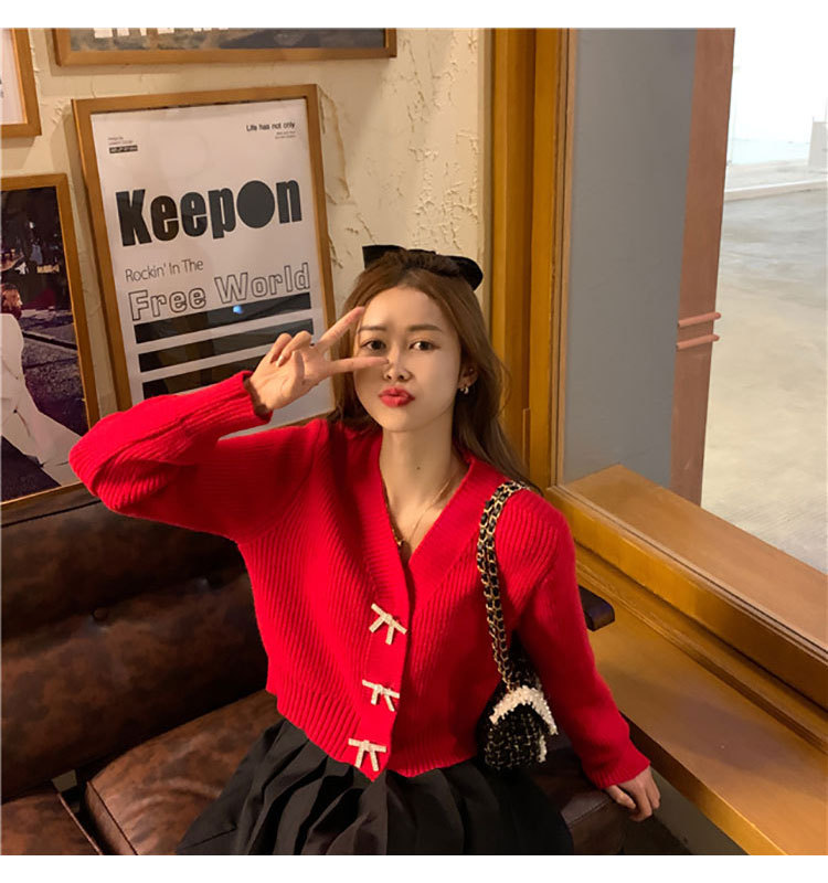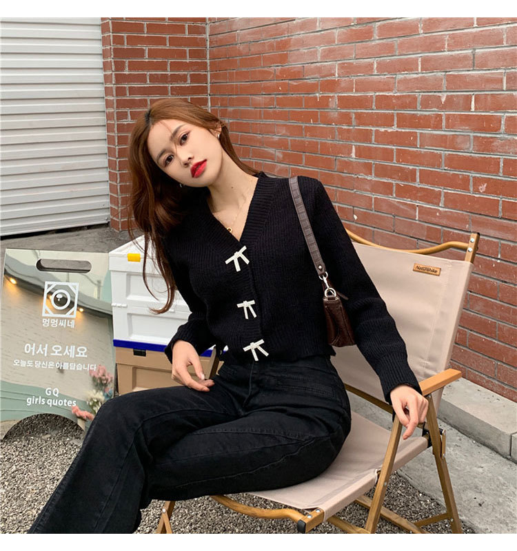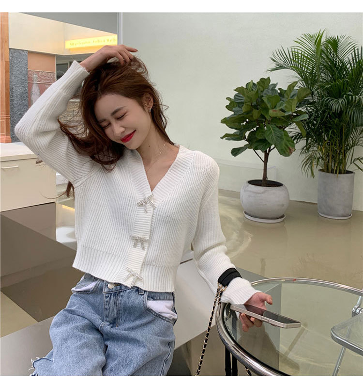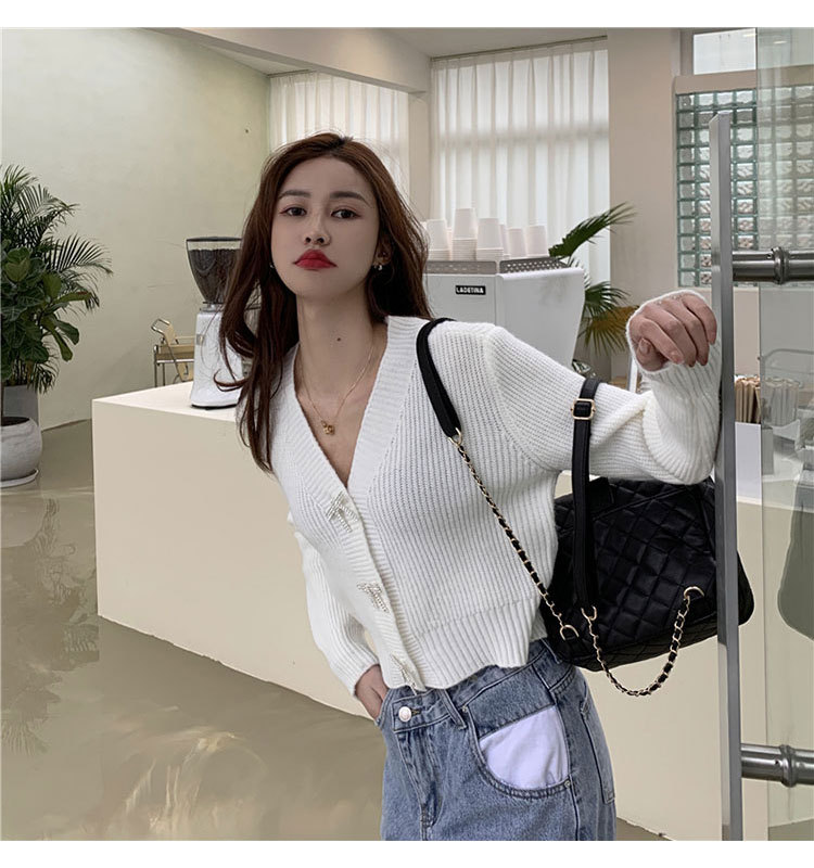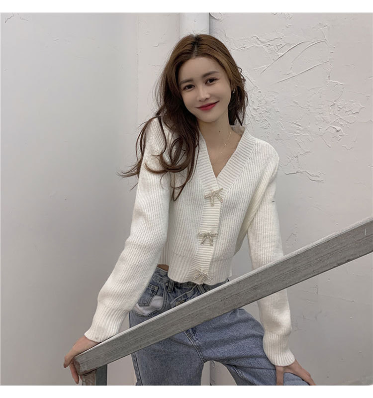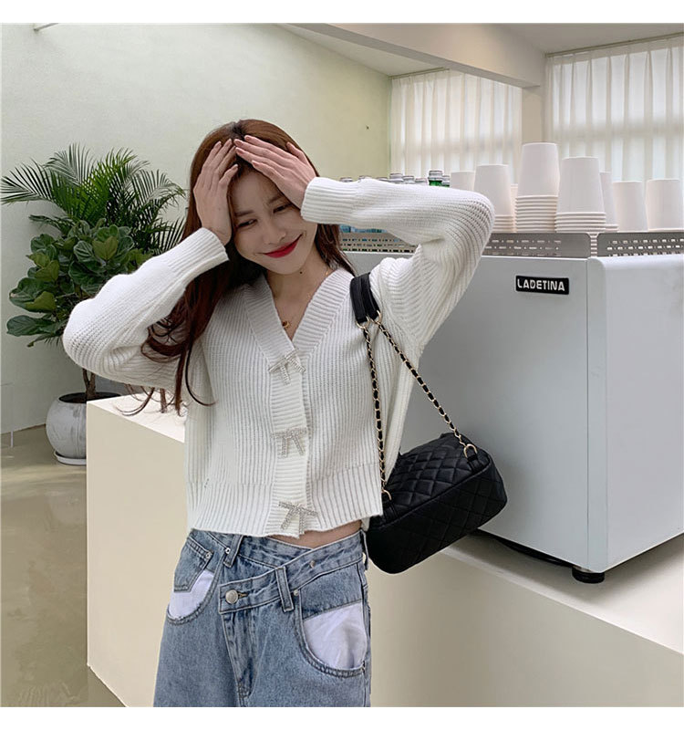 春装洋气网红时尚温柔风打底短款针织开衫v领 毛衣外套女