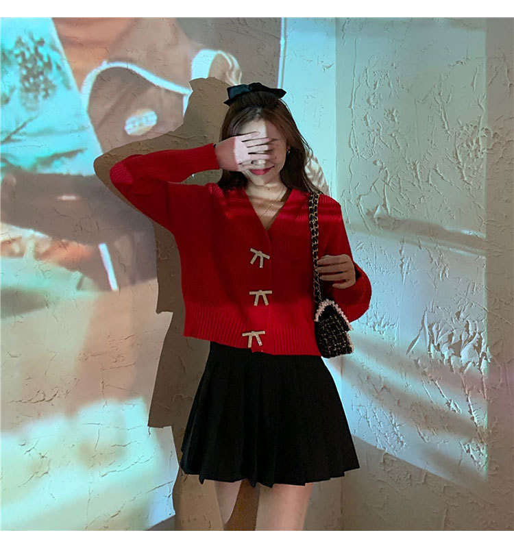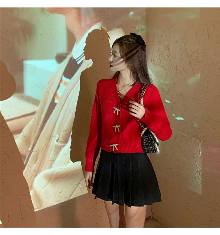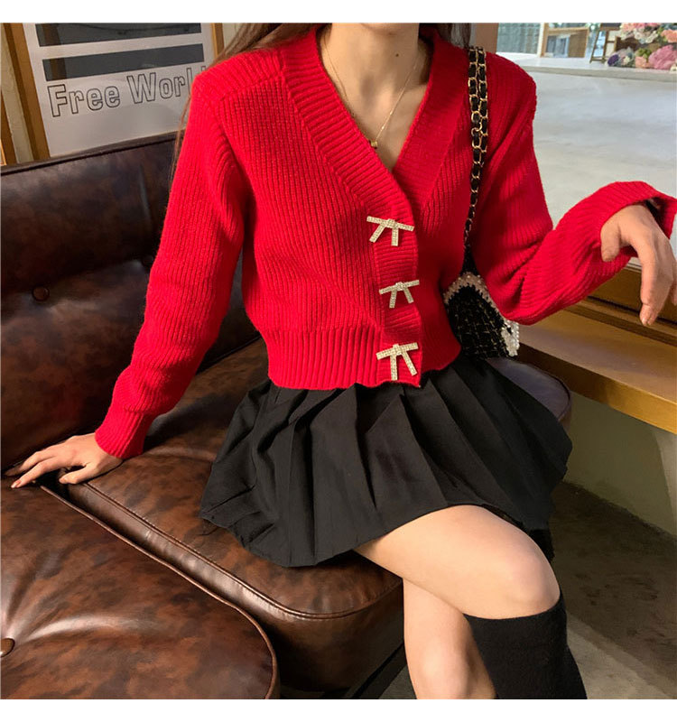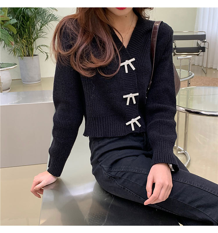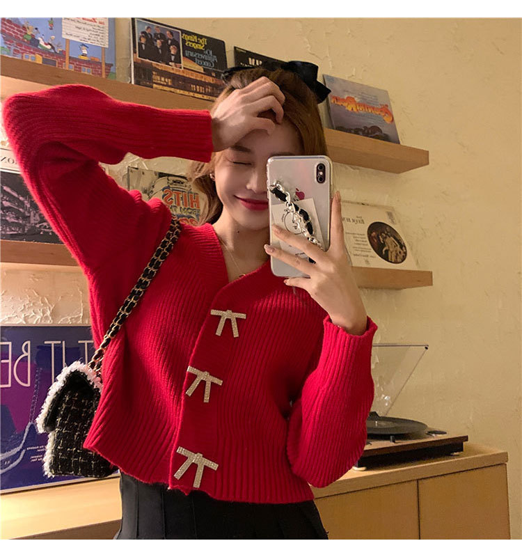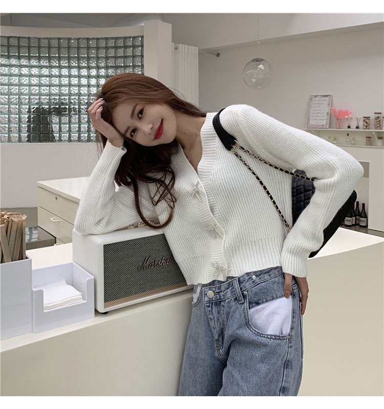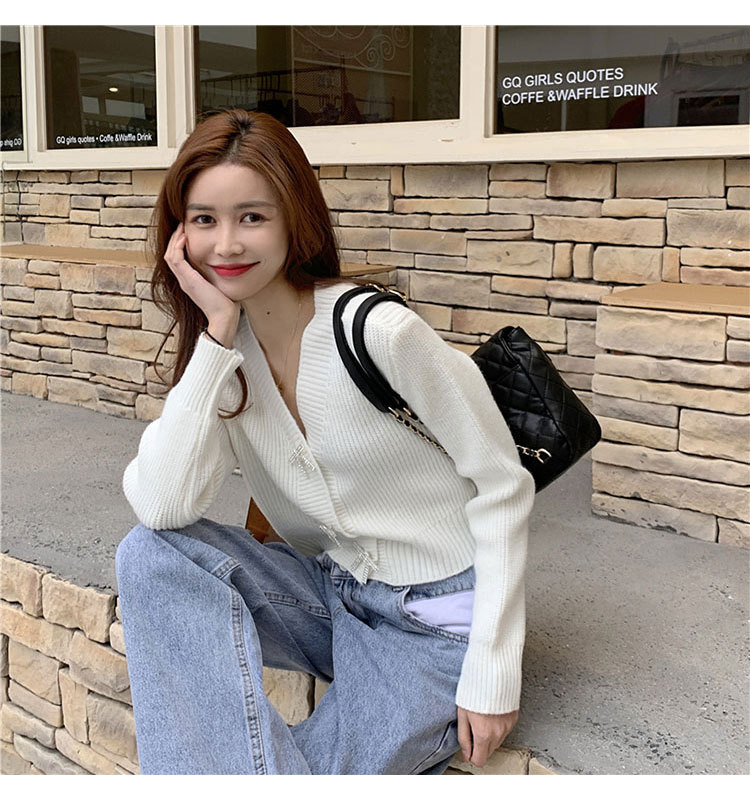 春装洋气网红时尚温柔风打底短款针织开衫v领 毛衣外套女