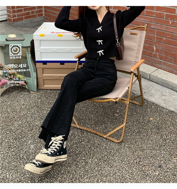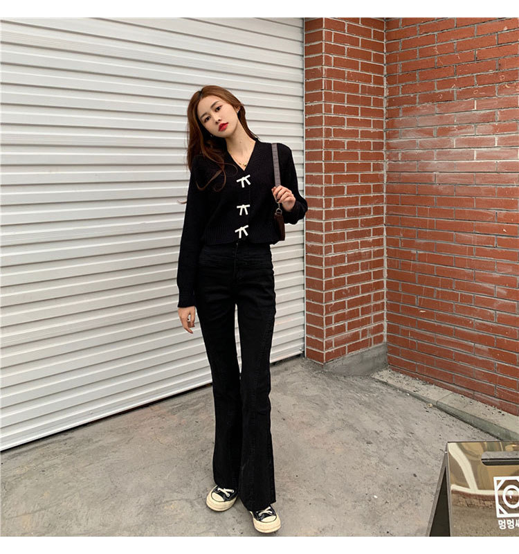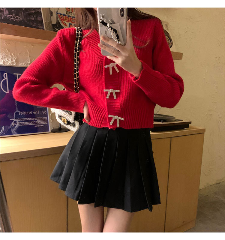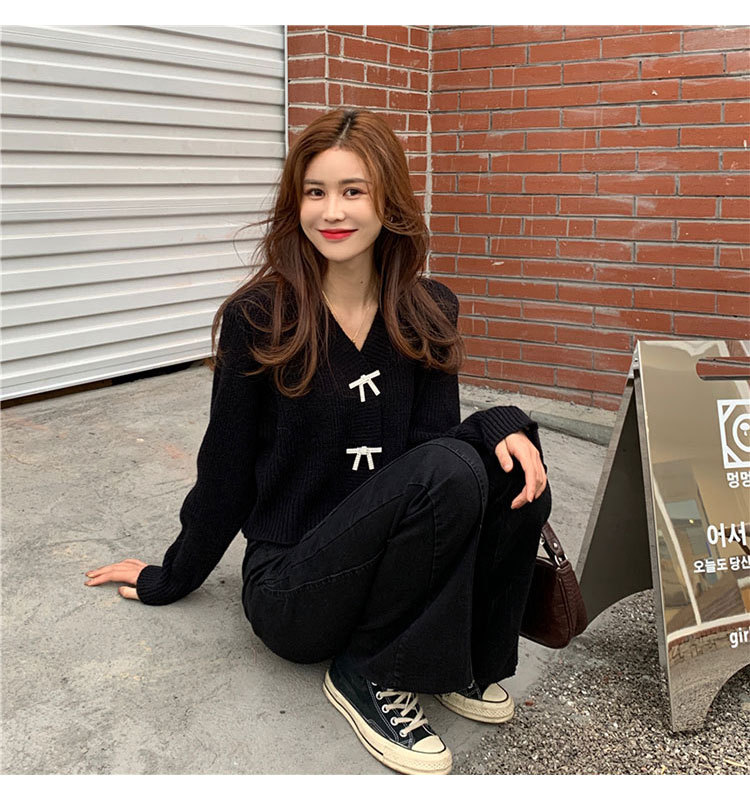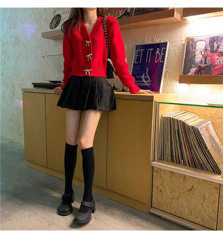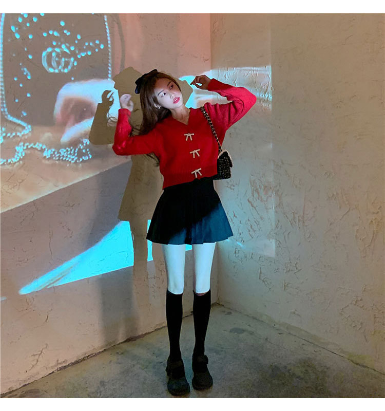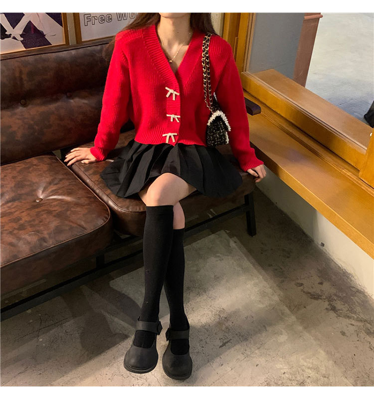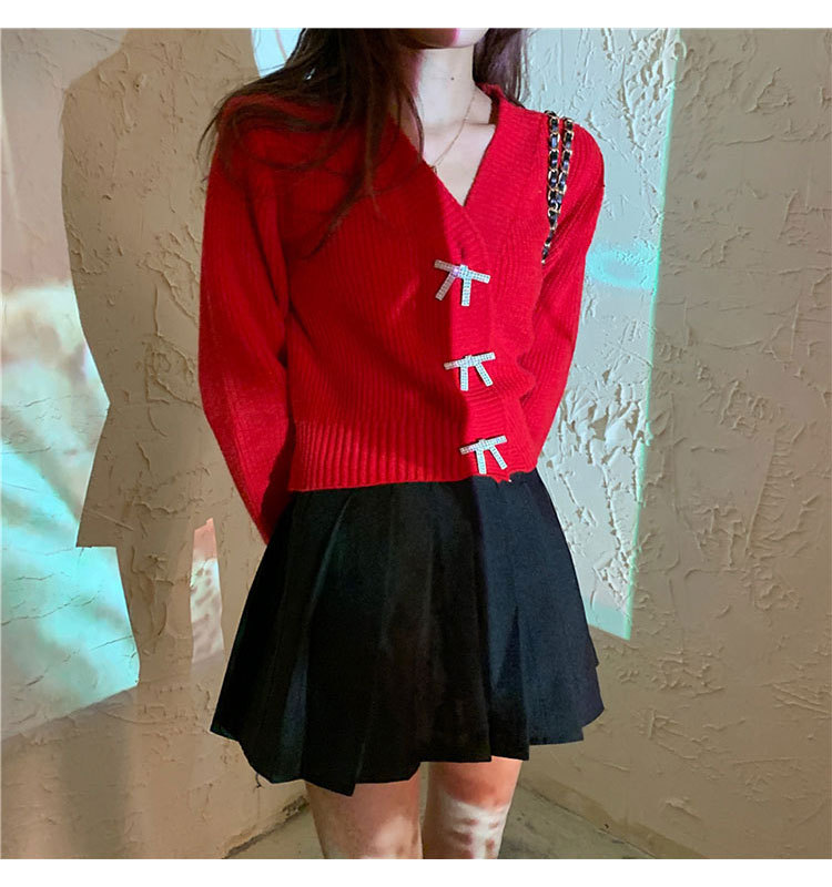 春装洋气网红时尚温柔风打底短款针织开衫v领 毛衣外套女