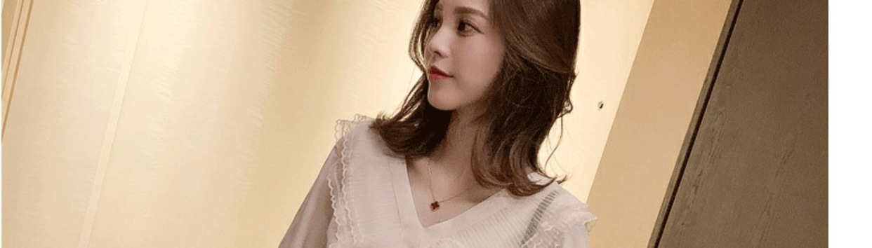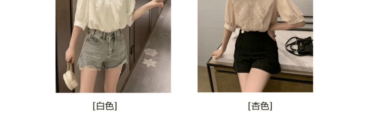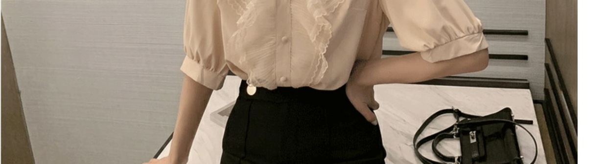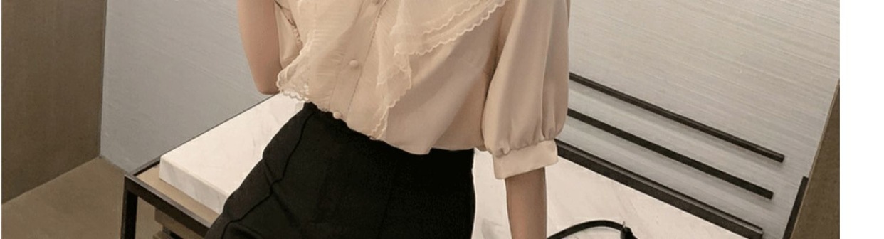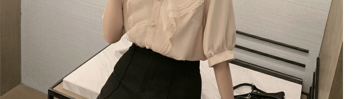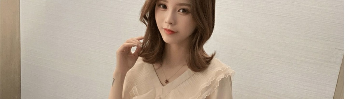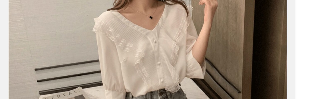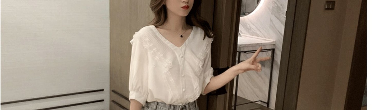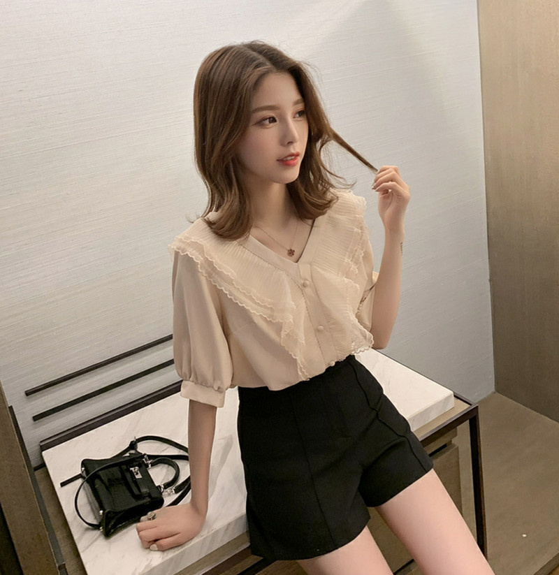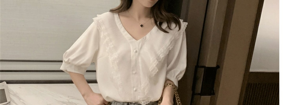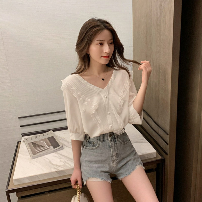 蕾丝V领上衣女新款夏潮超仙显瘦时尚设计感洋气短袖雪纺小衫