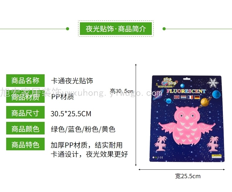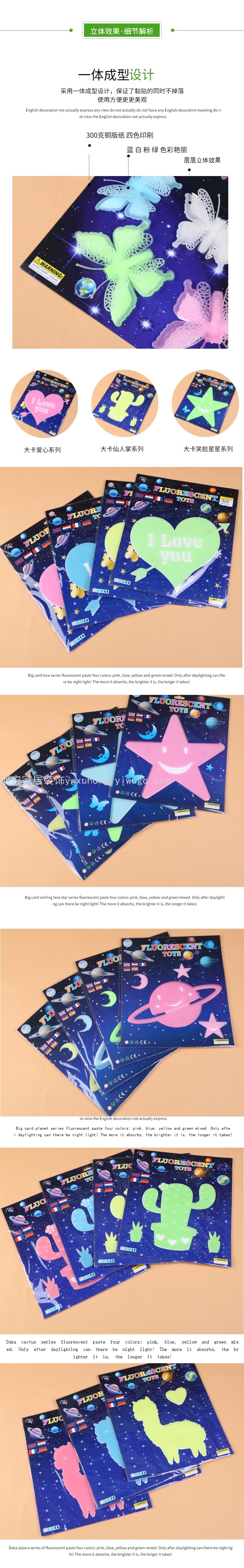 厂家直销创意发光夜光贴立体仙人掌自粘墙面装饰贴纸批发