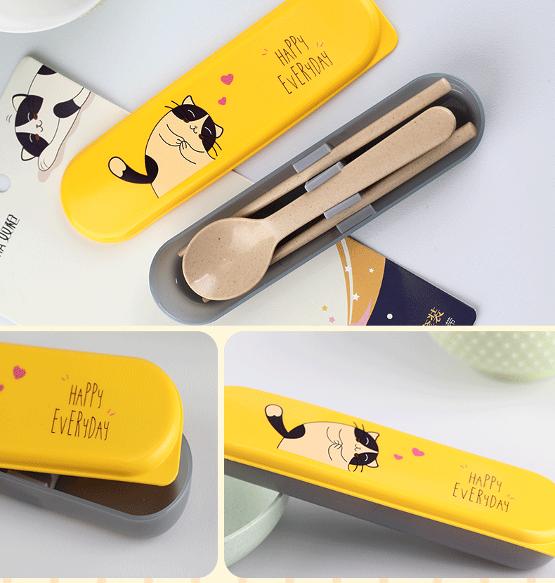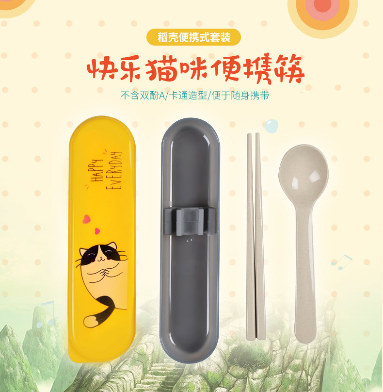 双枪稻壳便携餐具套装筷子勺子套装学生儿童旅行装两件套卡通时尚