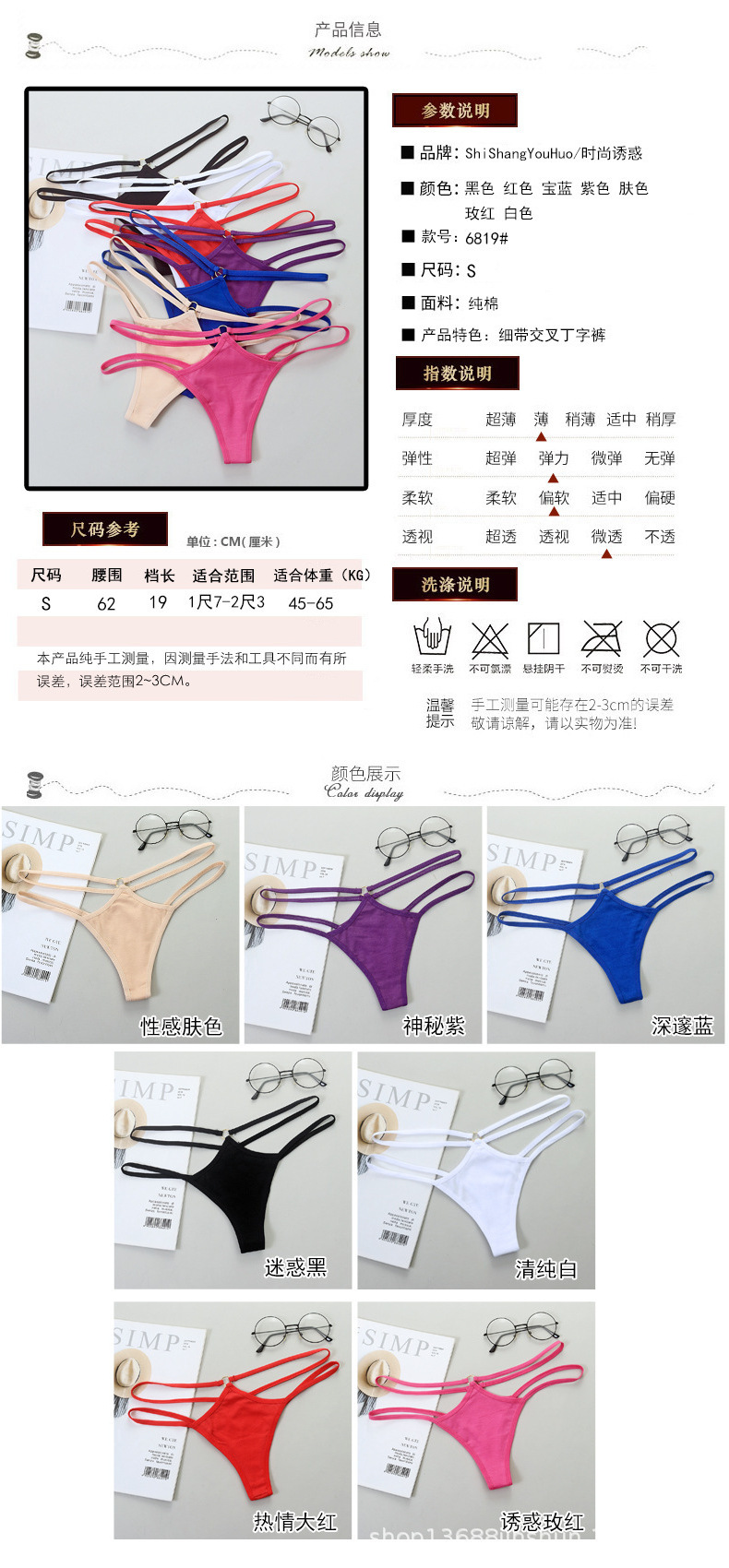新品蕾丝低腰女士内裤 细带镂空三角裤 透明性感女式丁字裤 6819