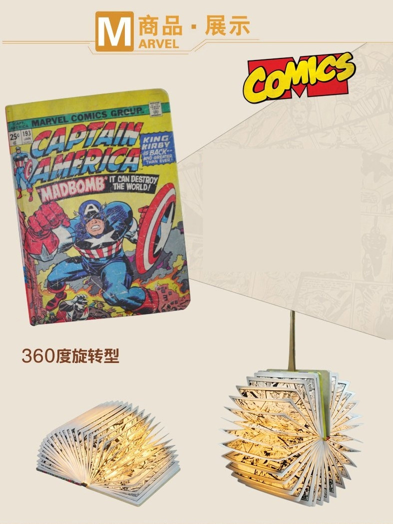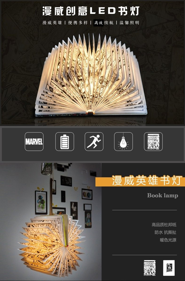 外贸专供正版漫画印刷钢铁侠雷神美国队长灯创意家居小夜灯书本灯