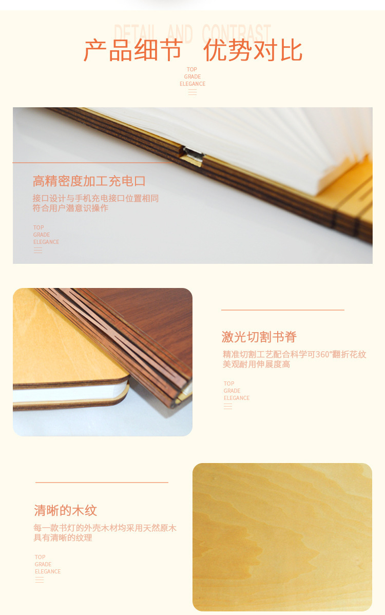 外贸专供电商热卖爆款折叠usb书本灯 木质led护眼灯 创意定制书灯