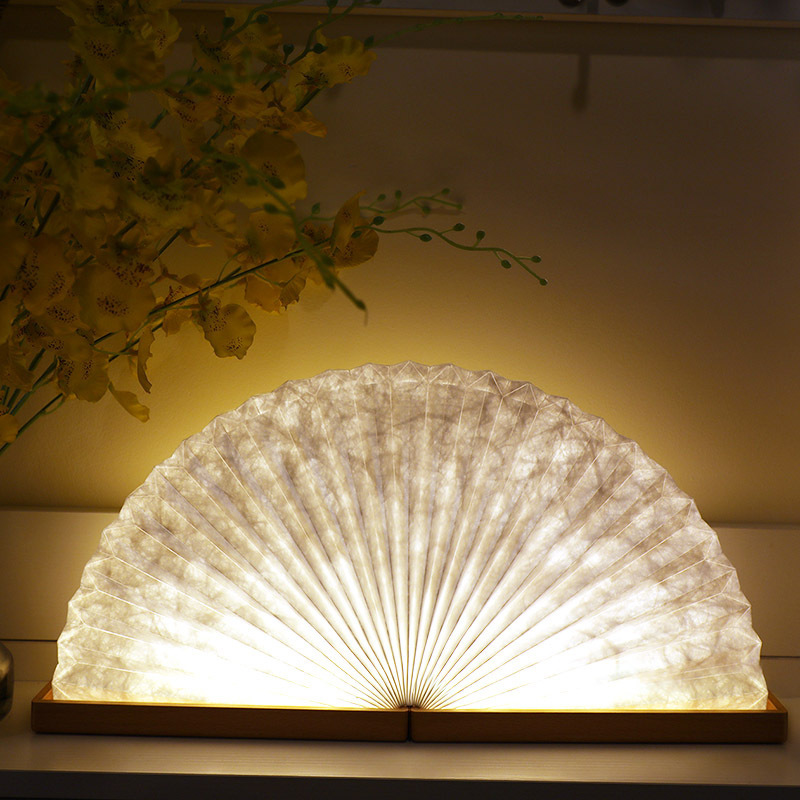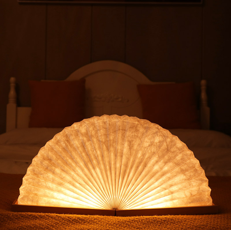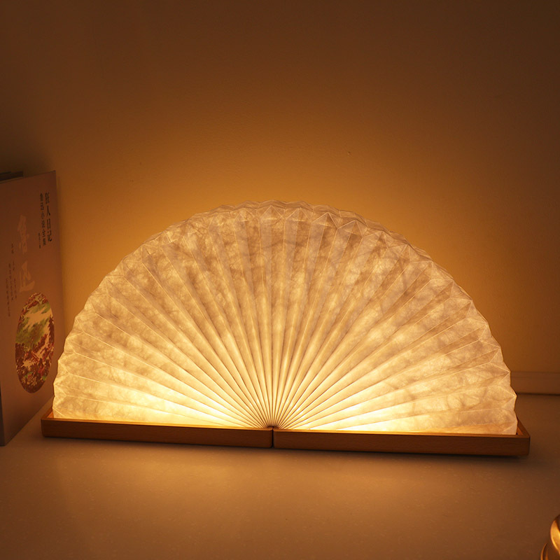 外贸专供磁吸木制灯 企业定制图案led扇形小夜书灯 新品扇子灯