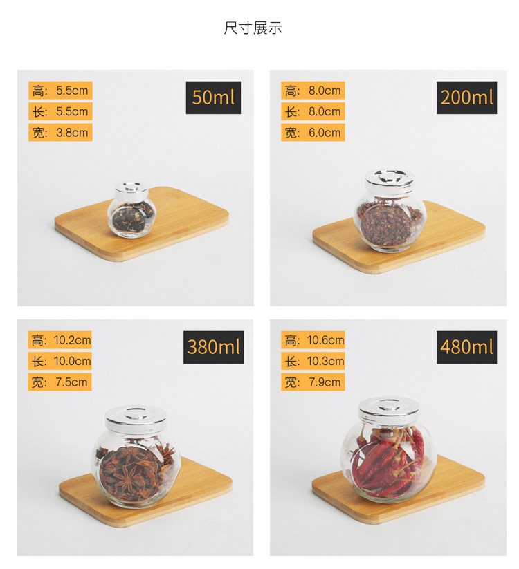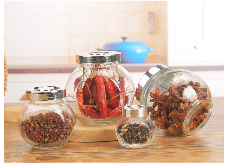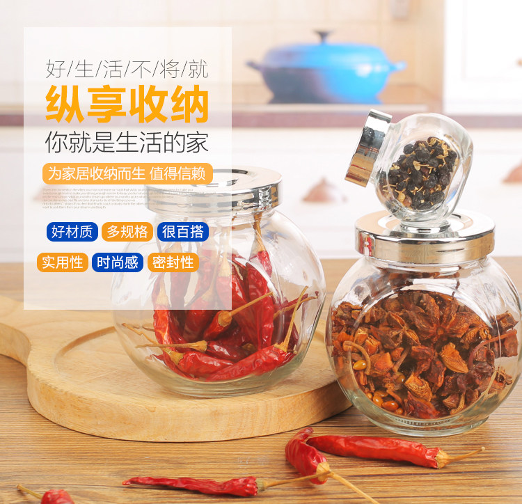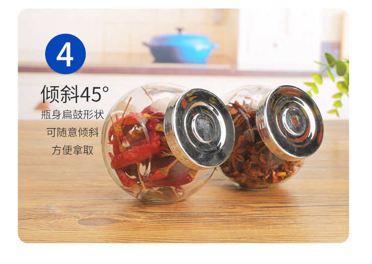 玻璃调味瓶储物罐扁鼓玻璃瓶透明玻璃瓶子喜糖瓶茶叶罐糖罐密封罐