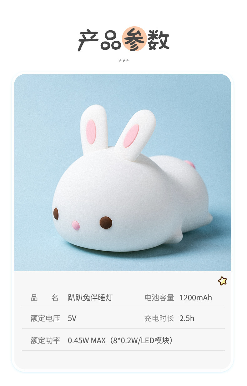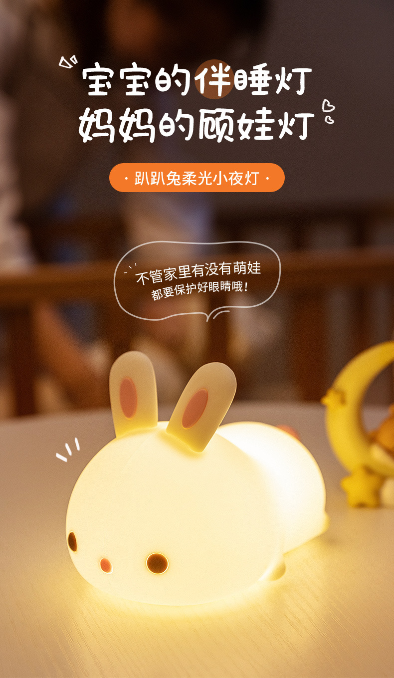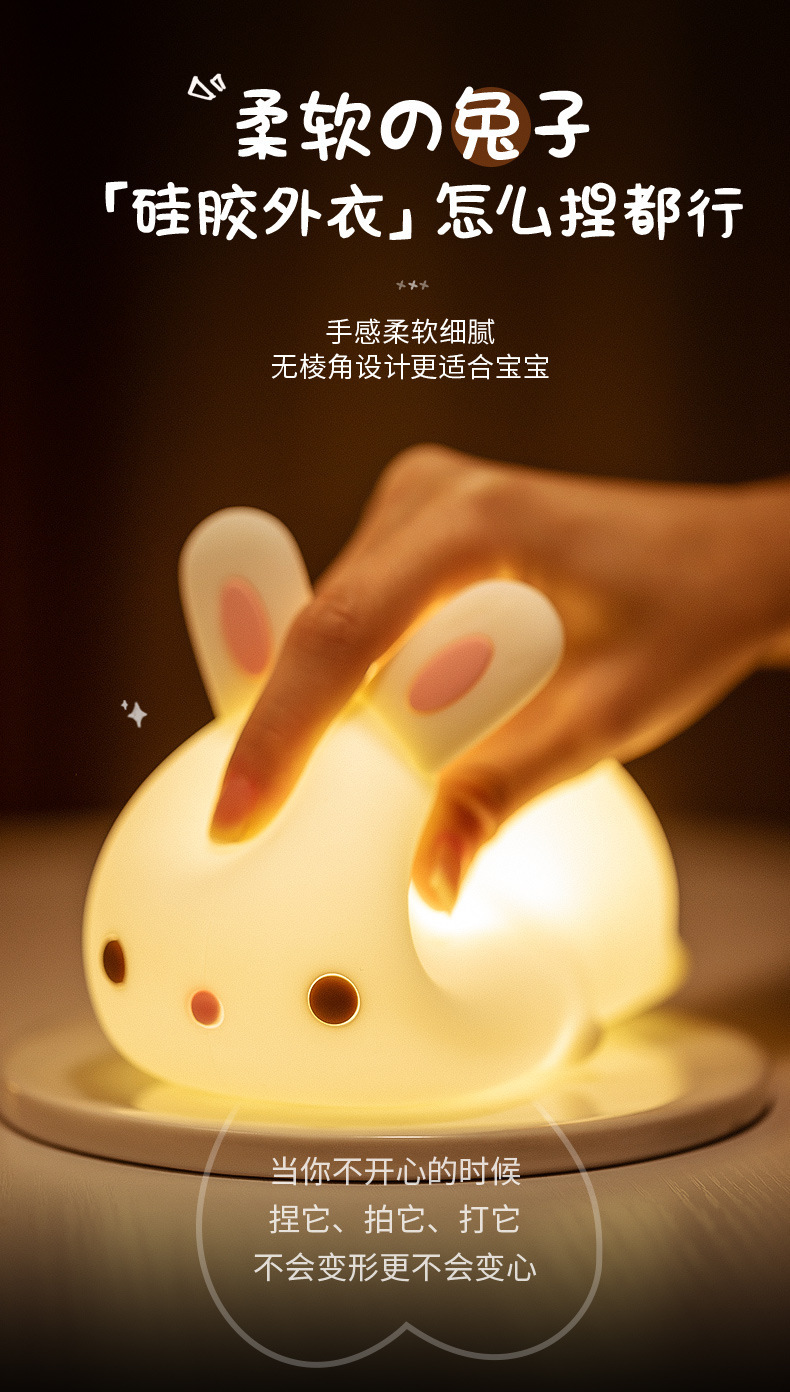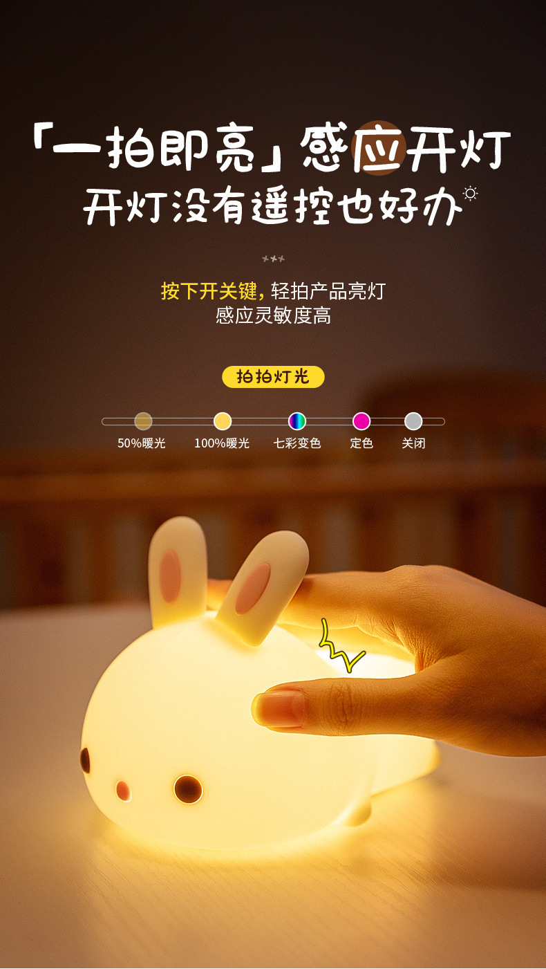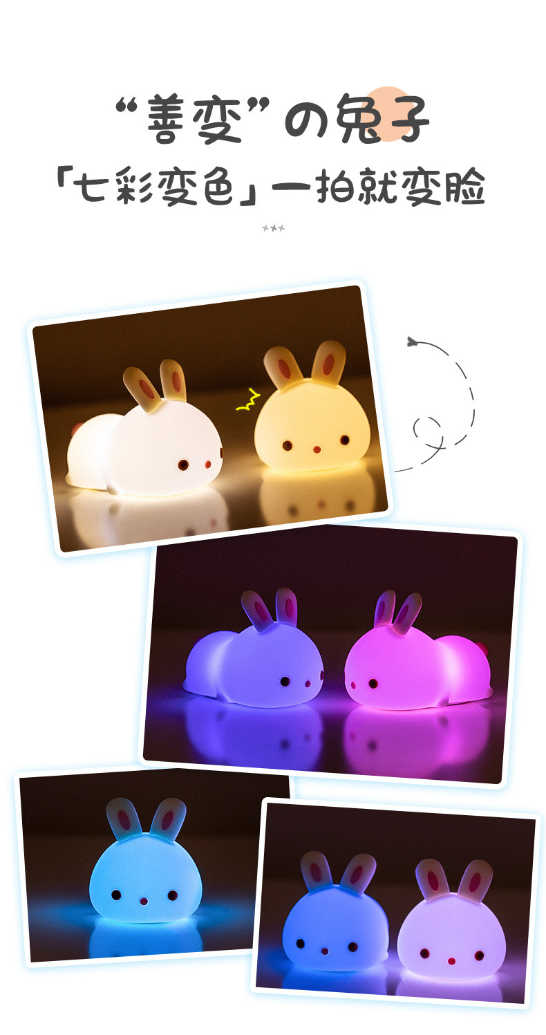 外贸专供送女生卡通兔子硅胶小夜灯 儿童床头灯七彩拍拍灯新奇特