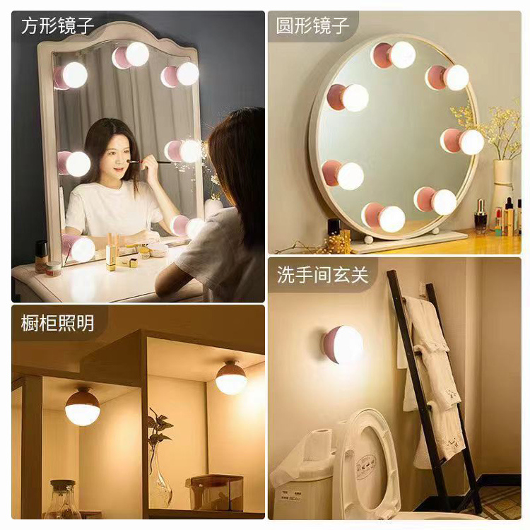 LED化妆镜补光灯 吸盘灯泡橱柜卧室小夜灯 USB充电镜子灯无极调光
