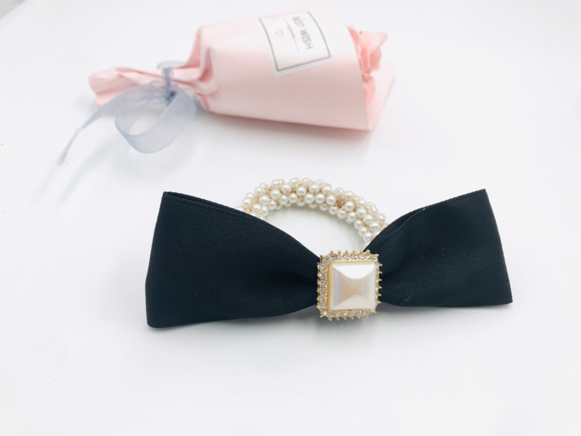 韩版高品质网红合金配件布艺蝴蝶结珍珠发圈头绳头扎发绳皮筋头饰