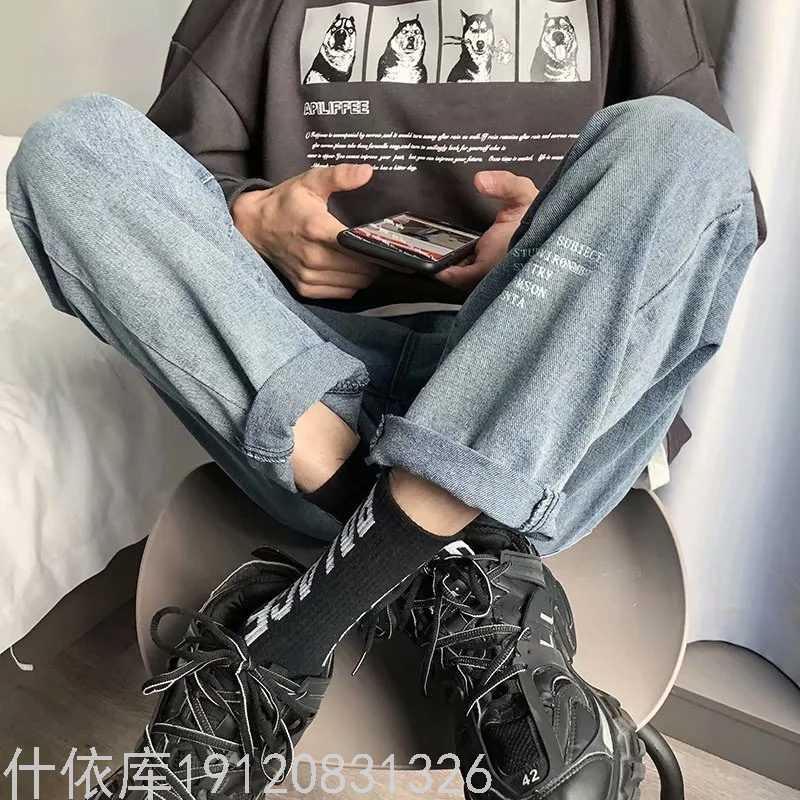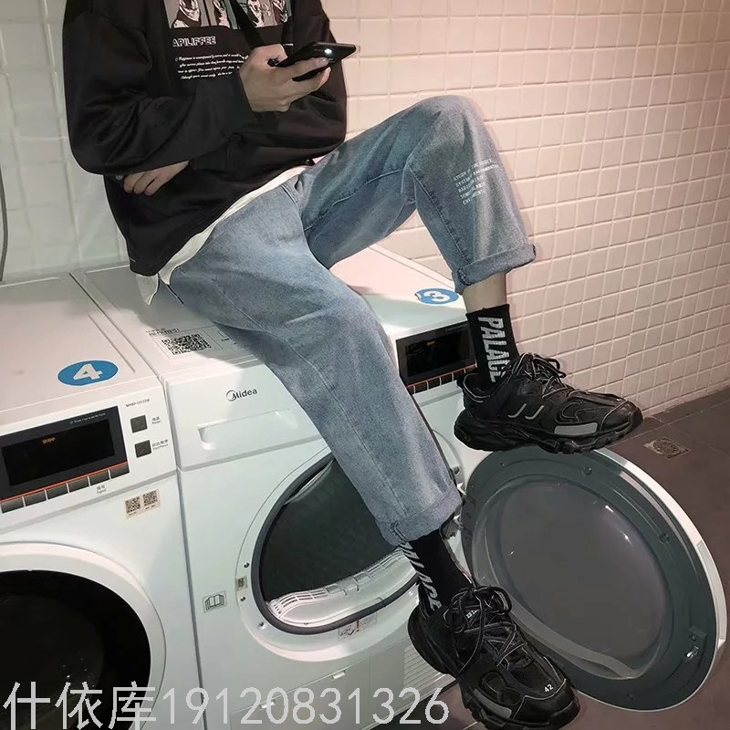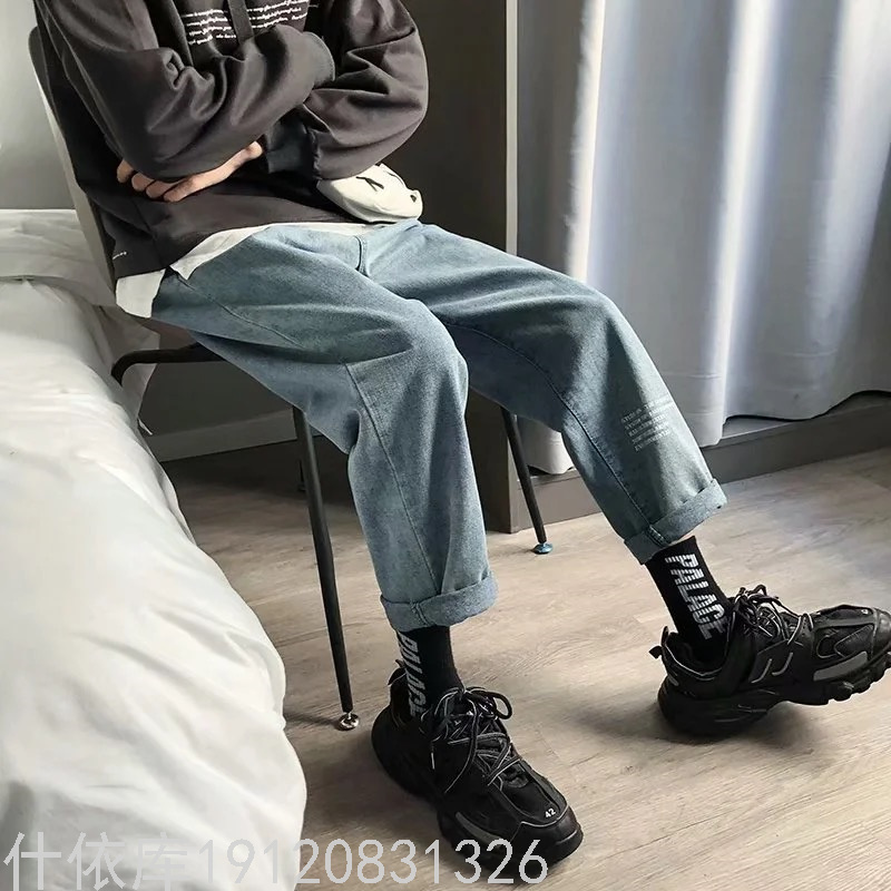 春秋韩版男士chic直筒宽松牛仔裤复古港风潮流小脚哈伦阔腿长裤潮