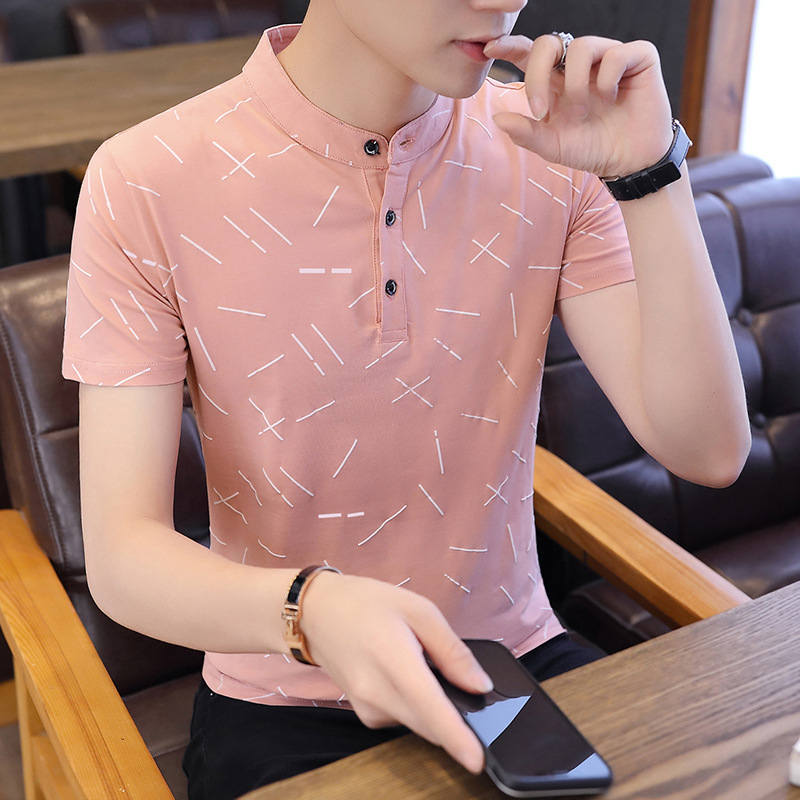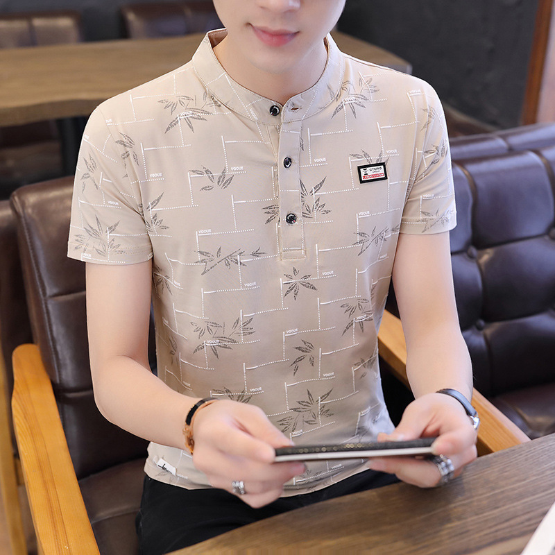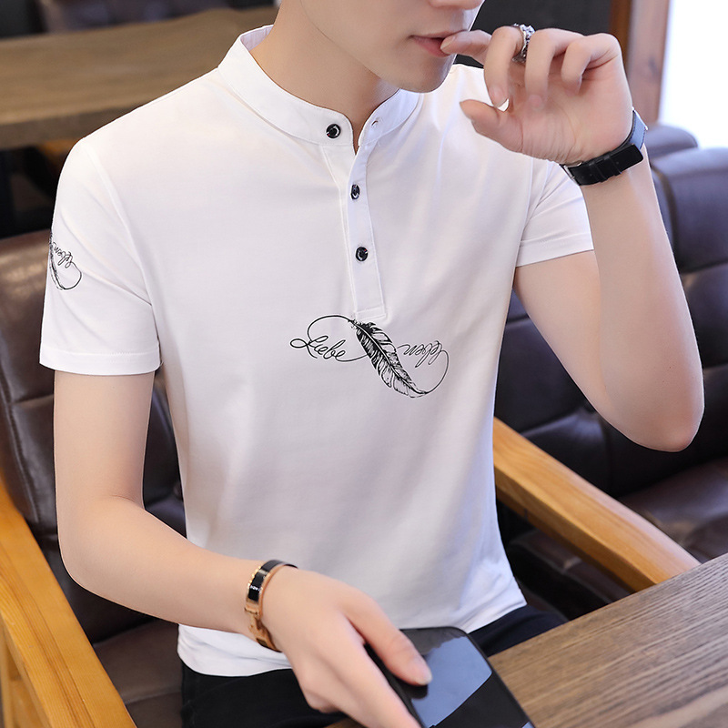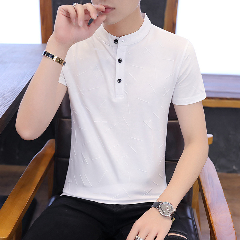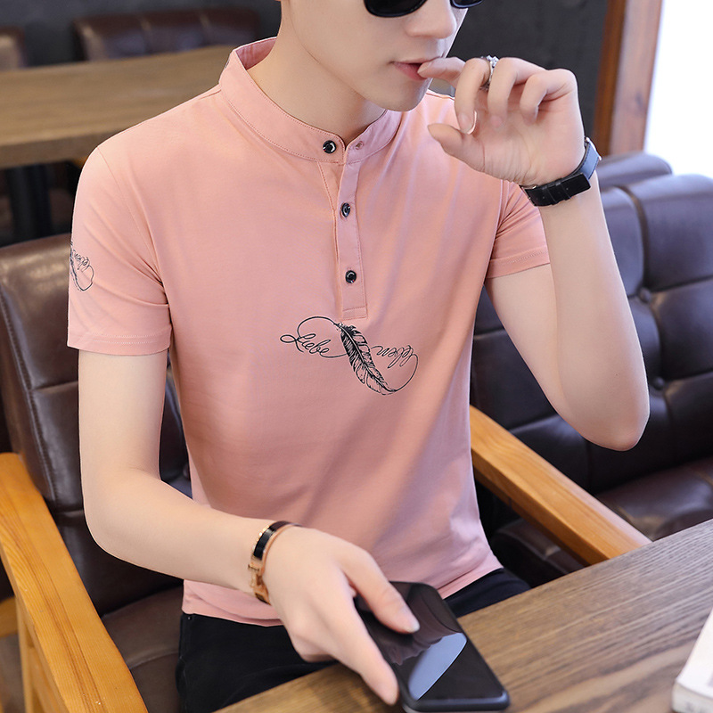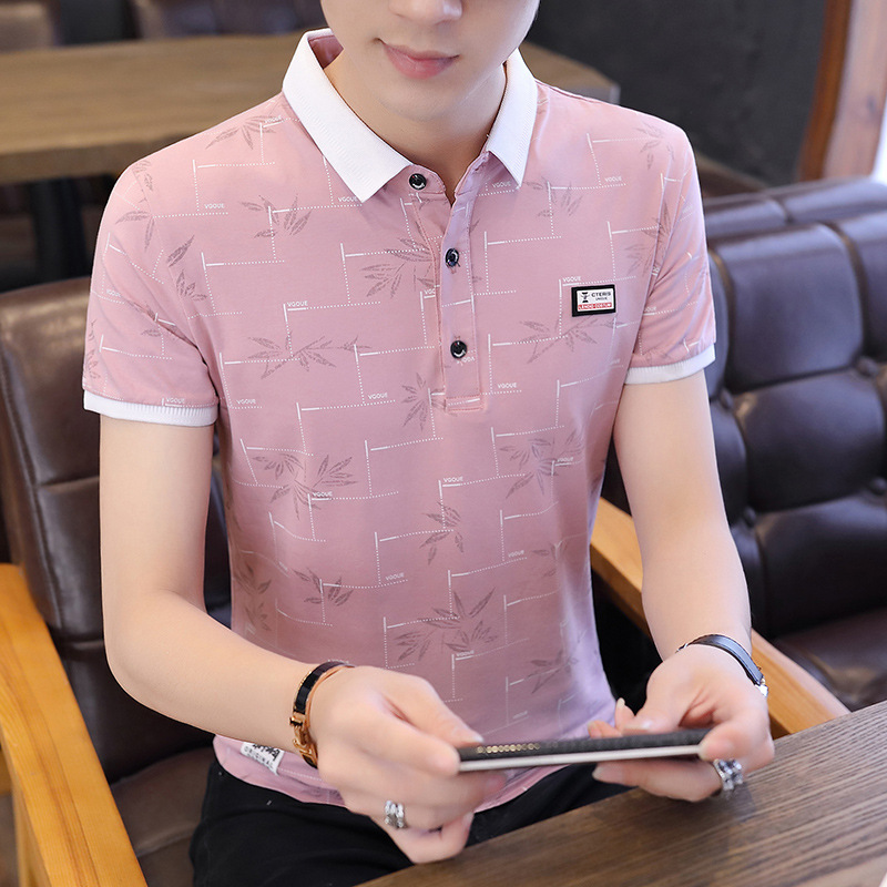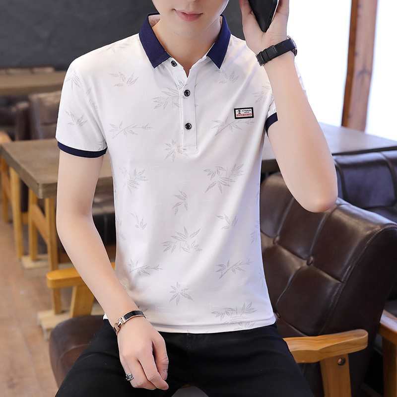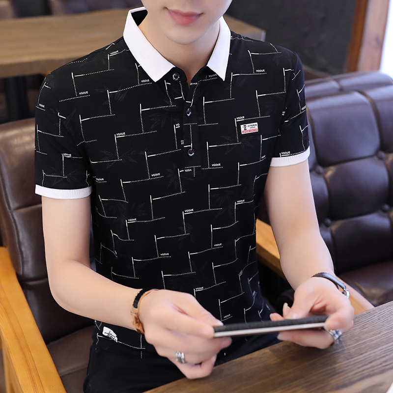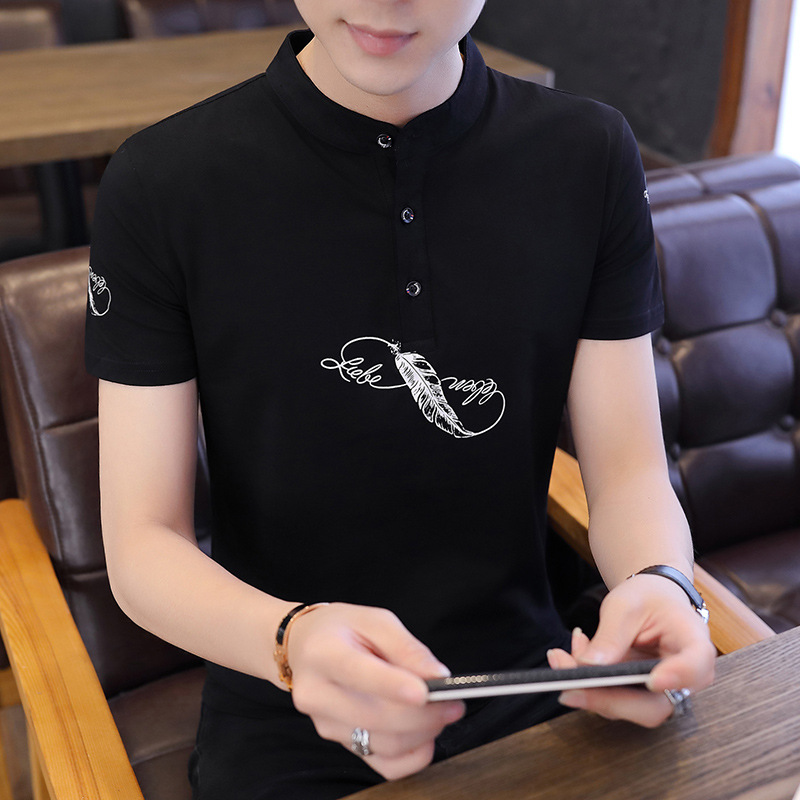 夏季潮流男装衬衫领POLO衫带领短袖T恤男翻领半袖衣服