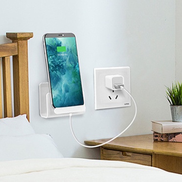 简约壁挂式平板手机充电支架加宽带绕线器带孔双层置物收纳架.