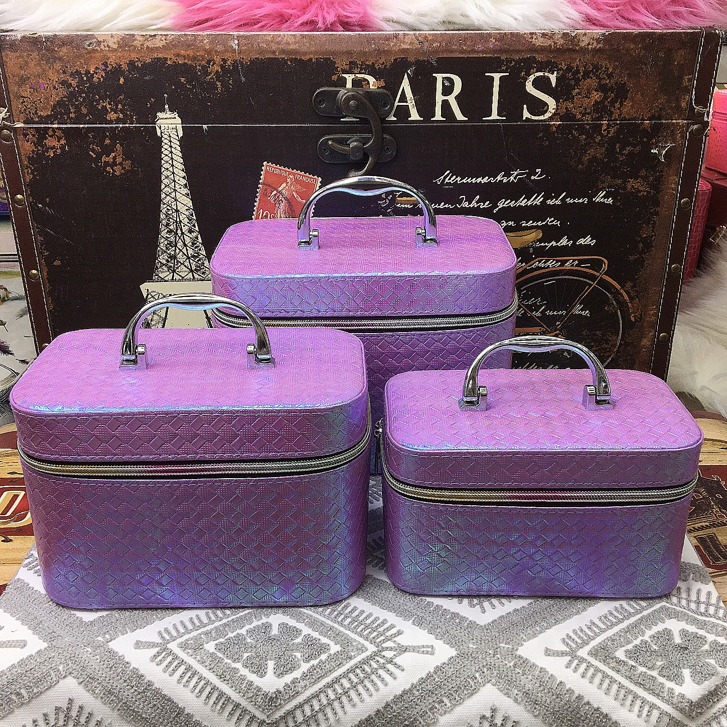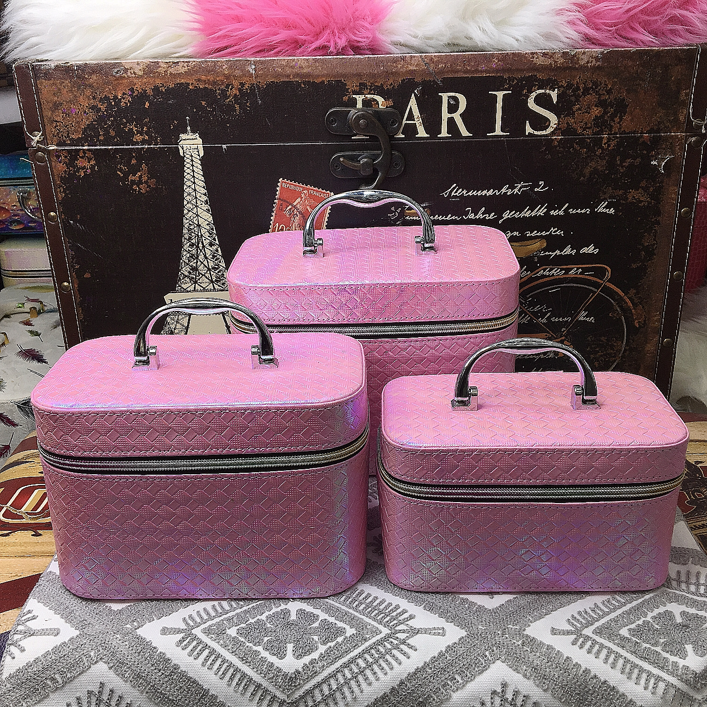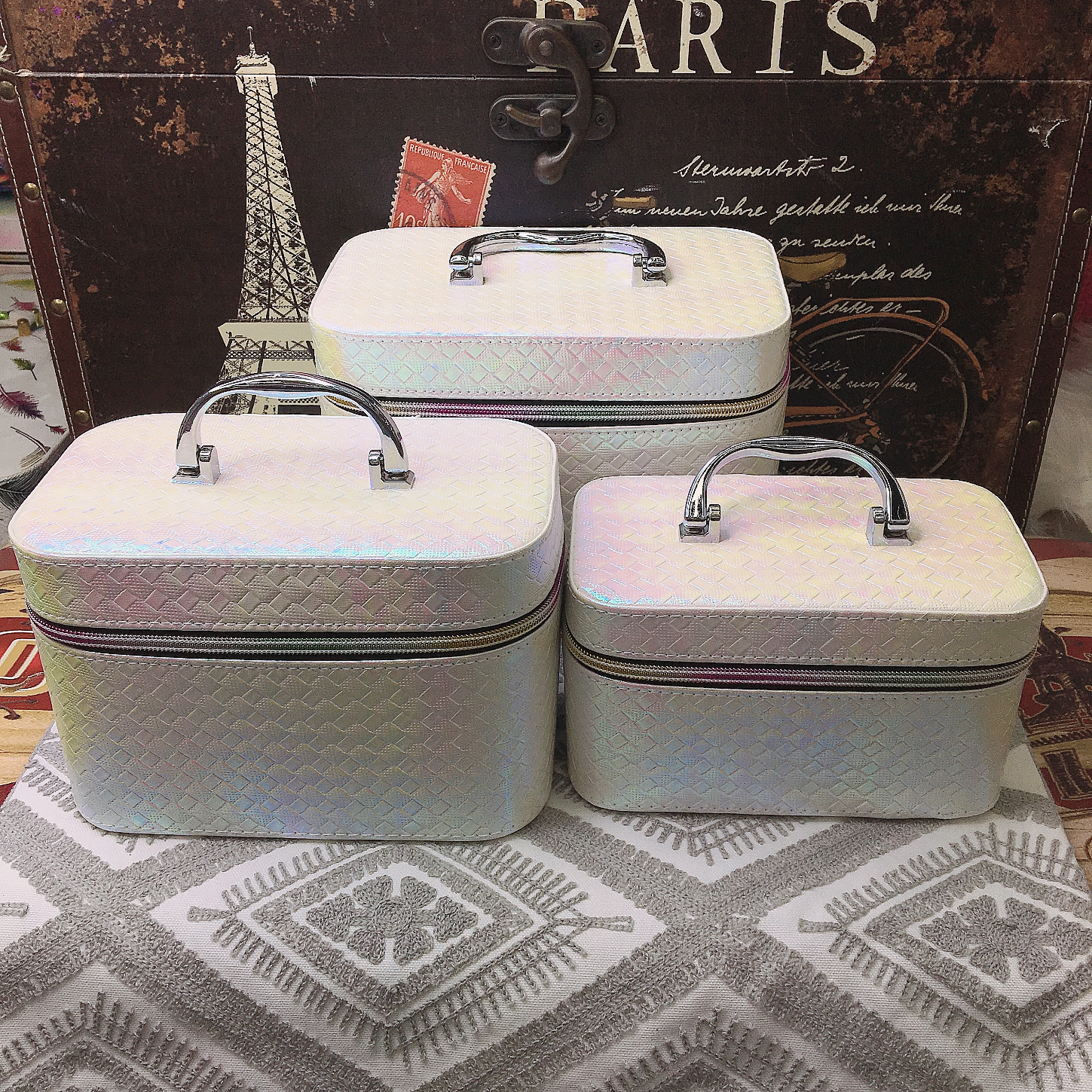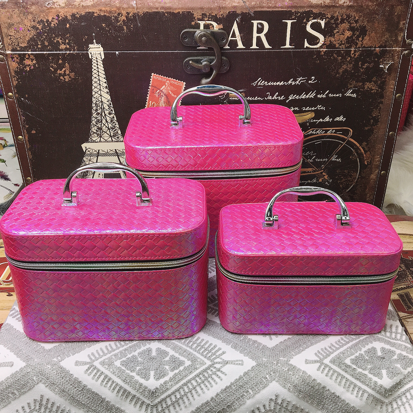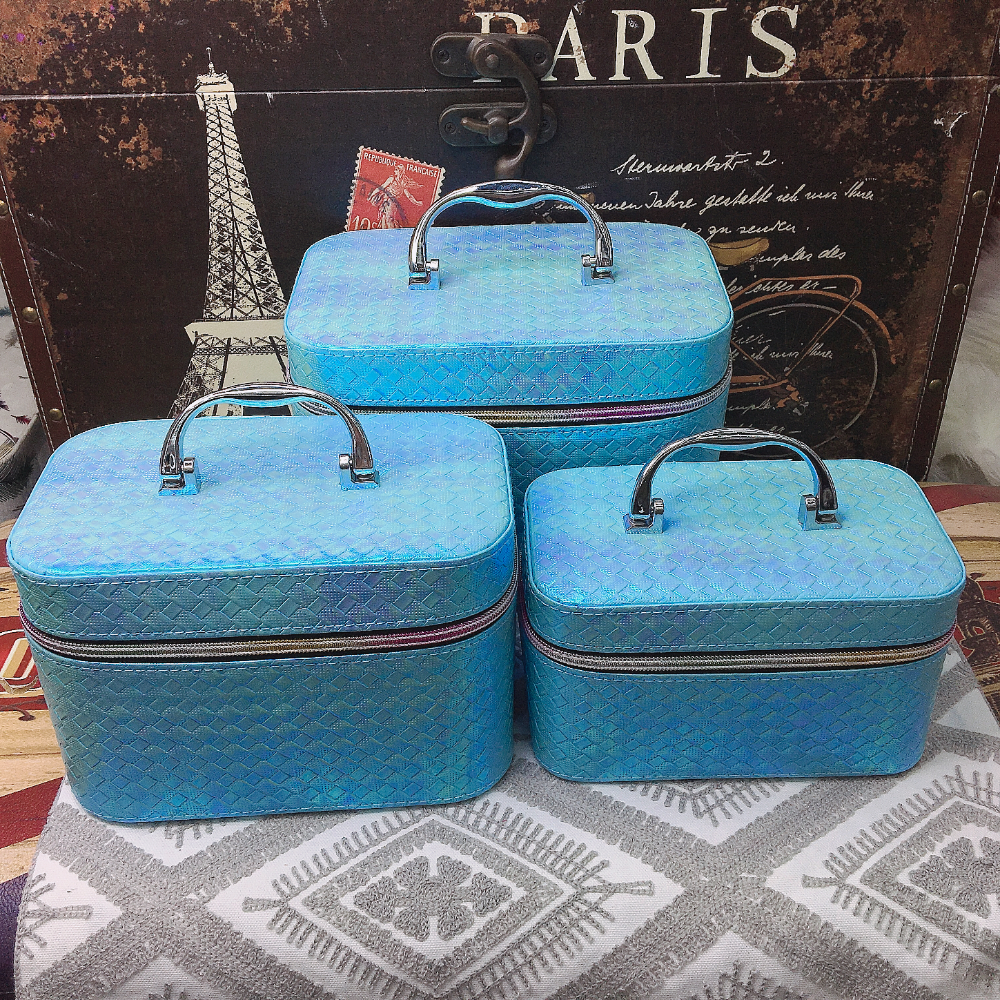 新款编织小格子收纳化妆 饰品首饰三件套化妆箱