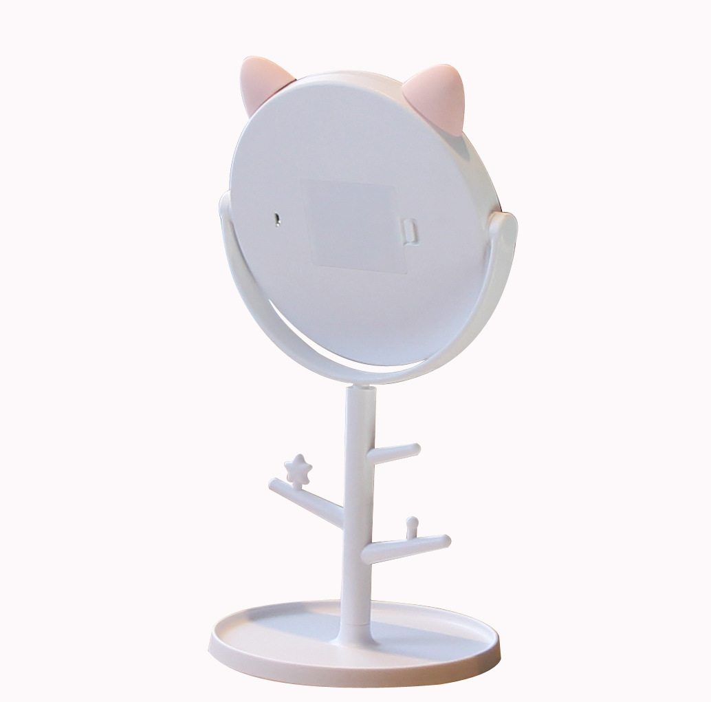 萌猫创意台式收纳LED化妆镜USB充电智能补光带灯美妆镜子