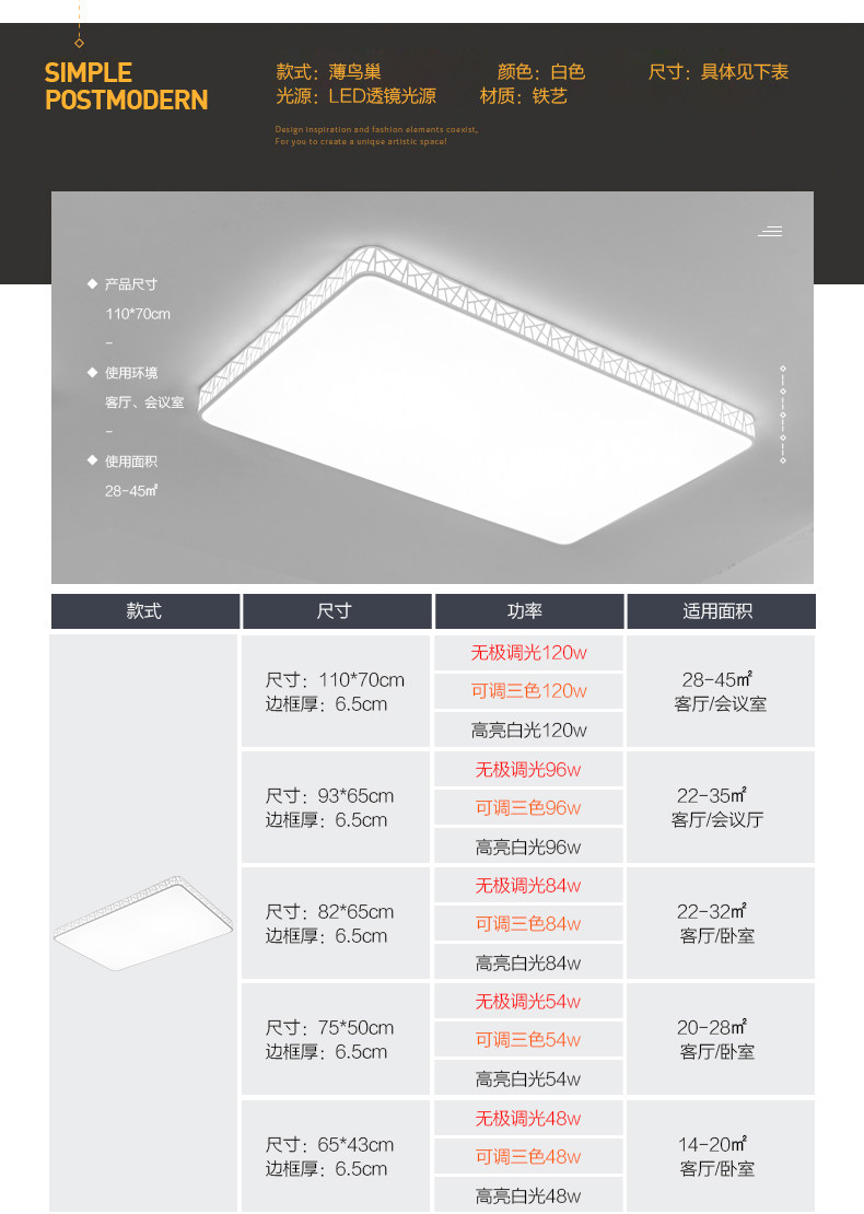 超薄长方形led吸顶灯现代简约鸟巢卧室灯铁艺灯饰