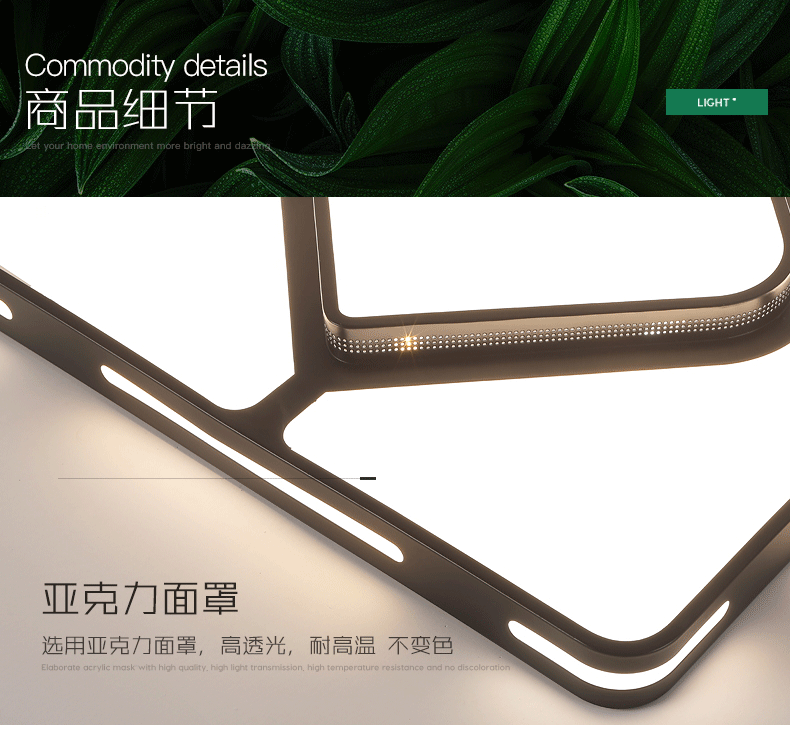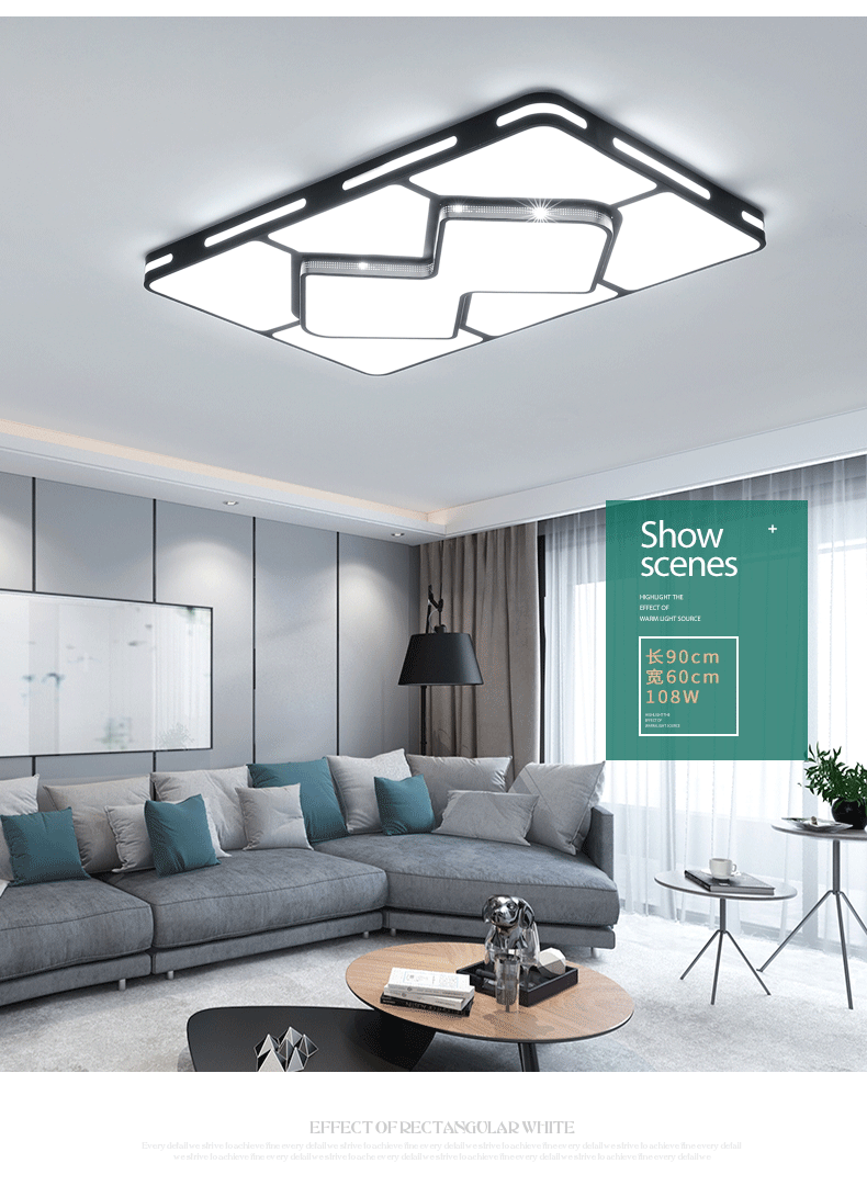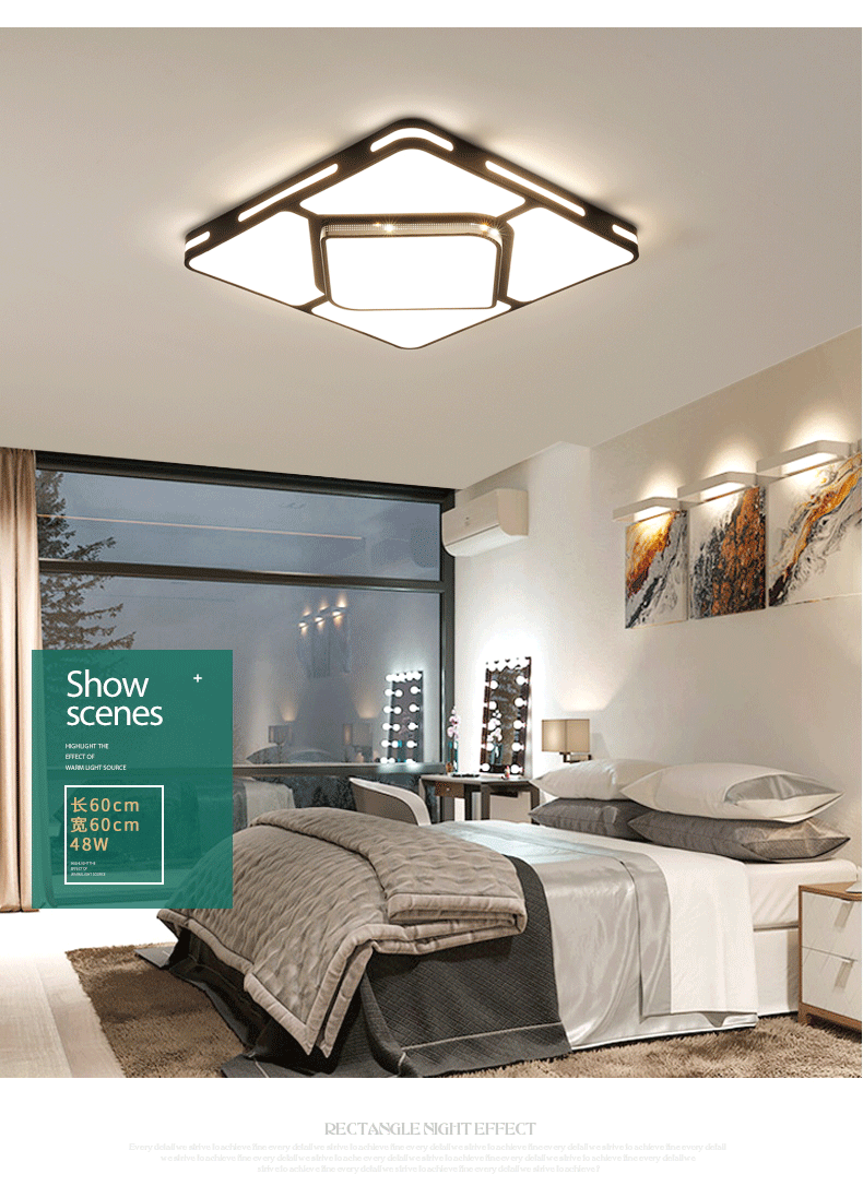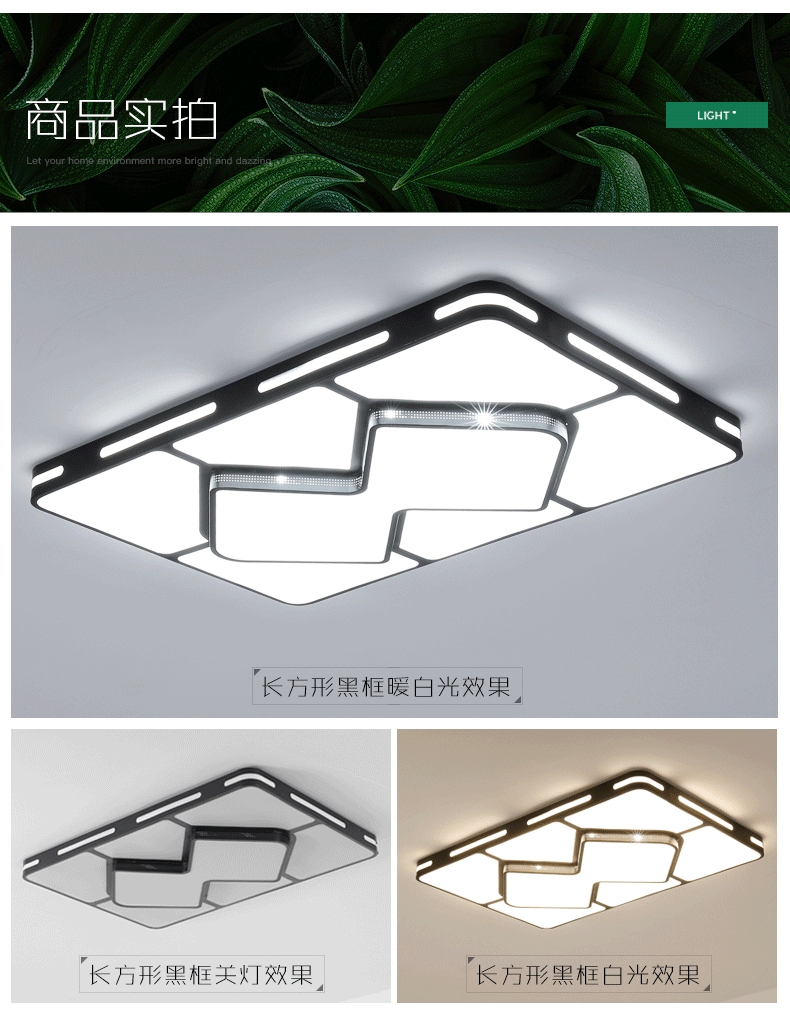 客厅灯 简约现代LED吸顶灯大气家用卧室灯黑色长方形餐厅灯具灯