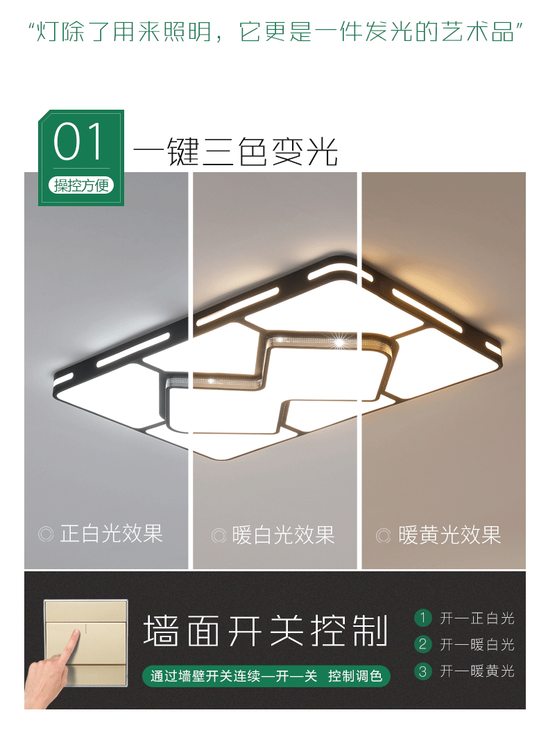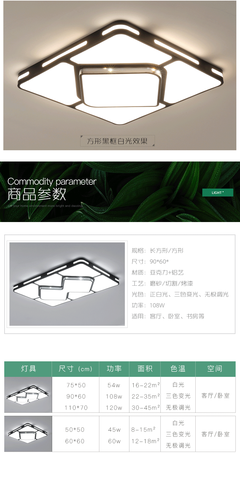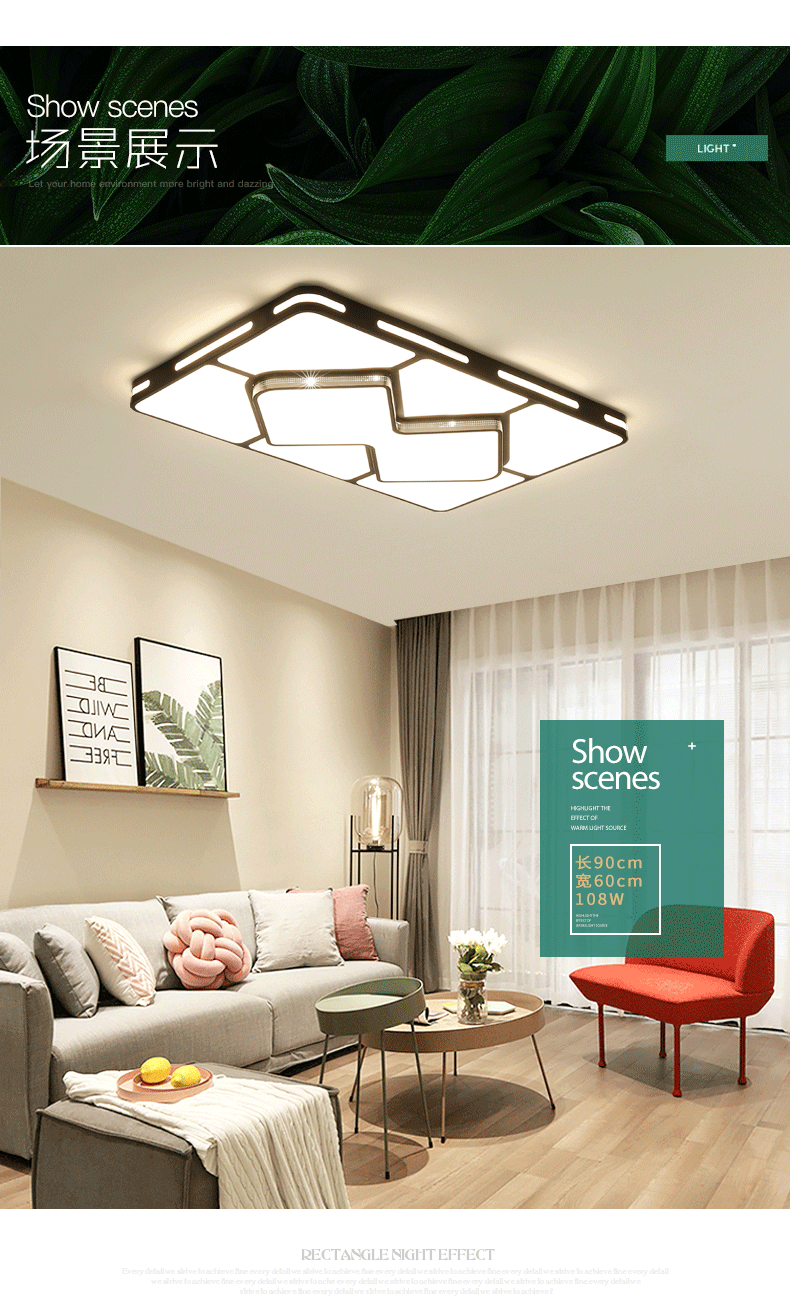 客厅灯 简约现代LED吸顶灯大气家用卧室灯黑色长方形餐厅灯具灯