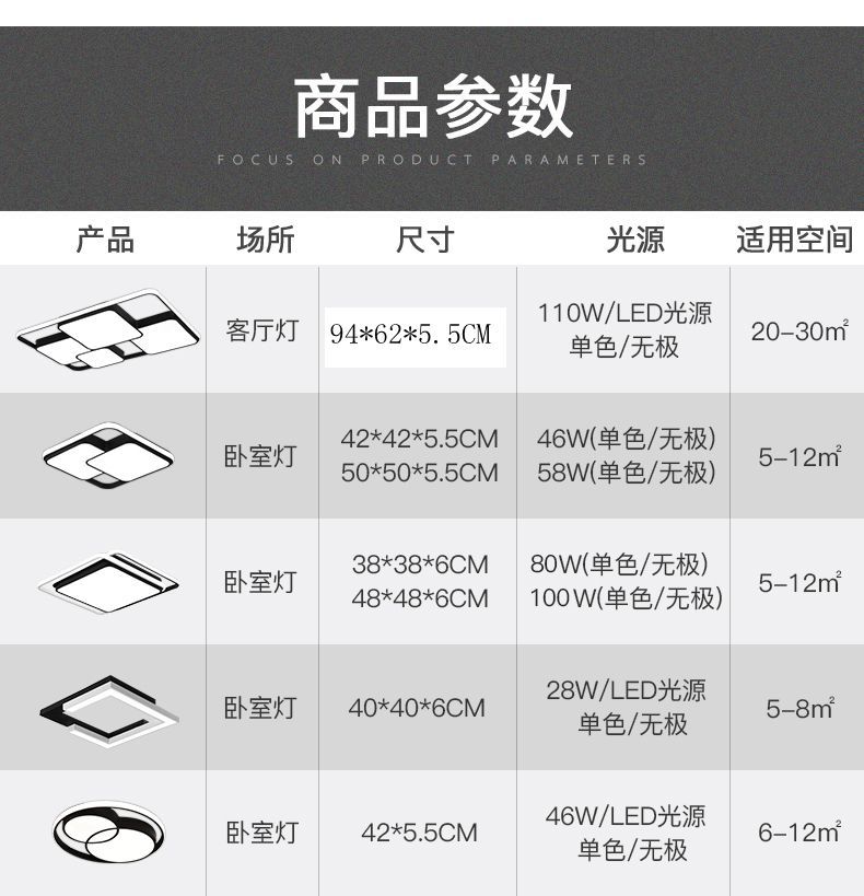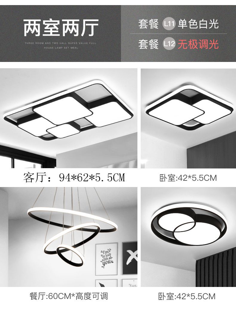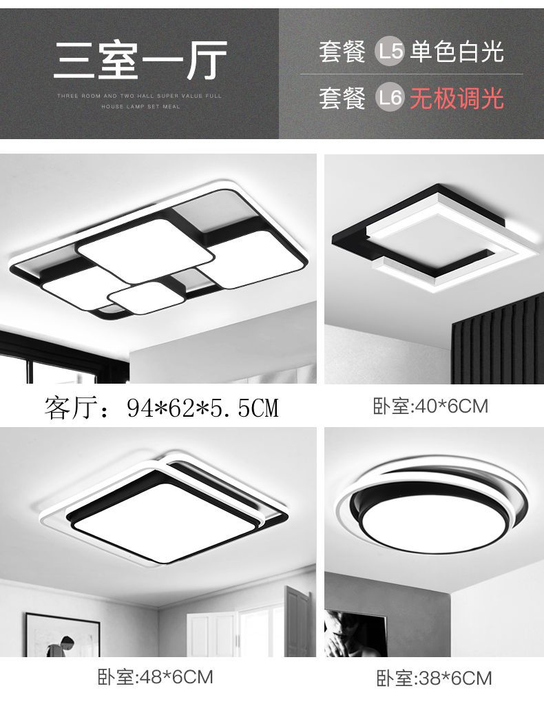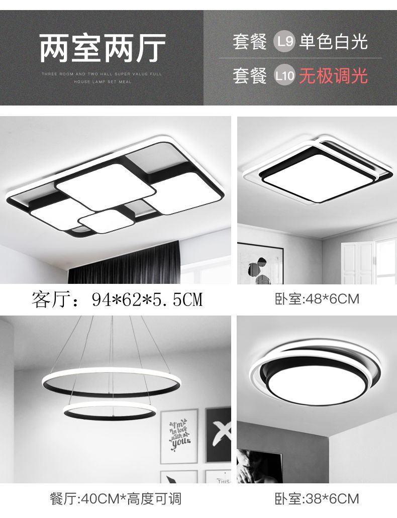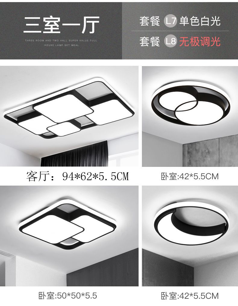 led吸顶灯客厅卧室灯简约大气家用灯长方形灯具套餐组合