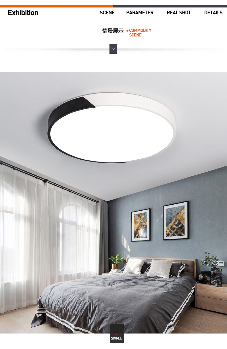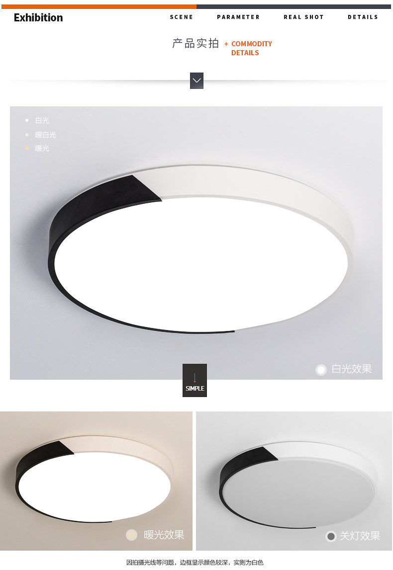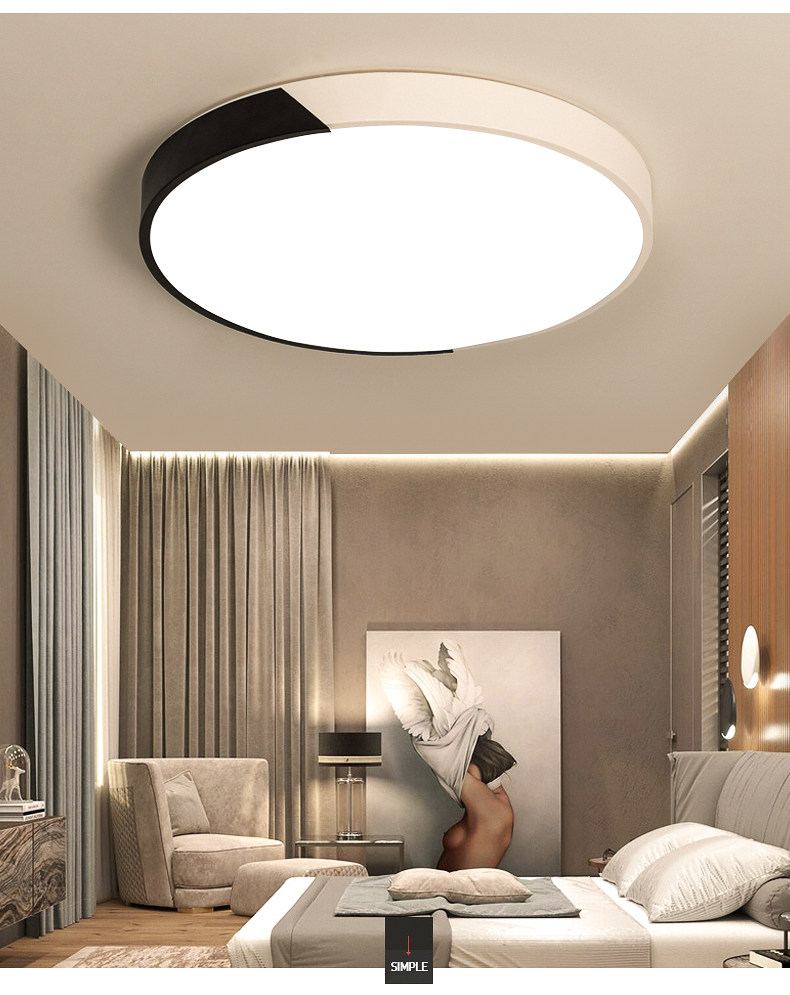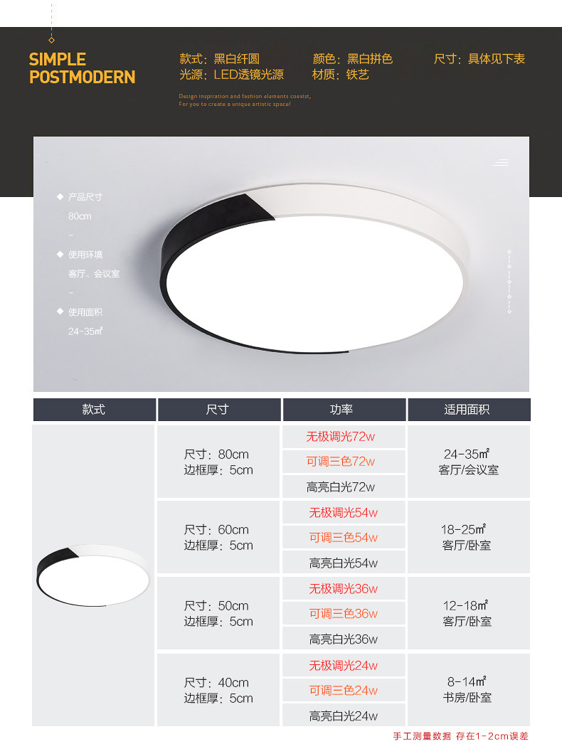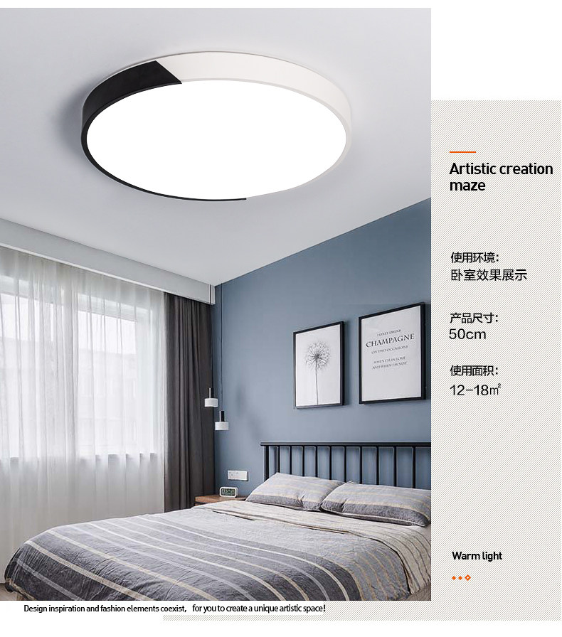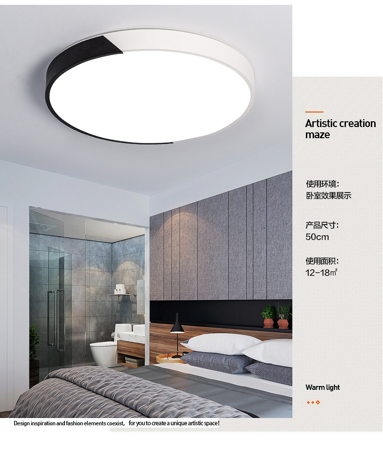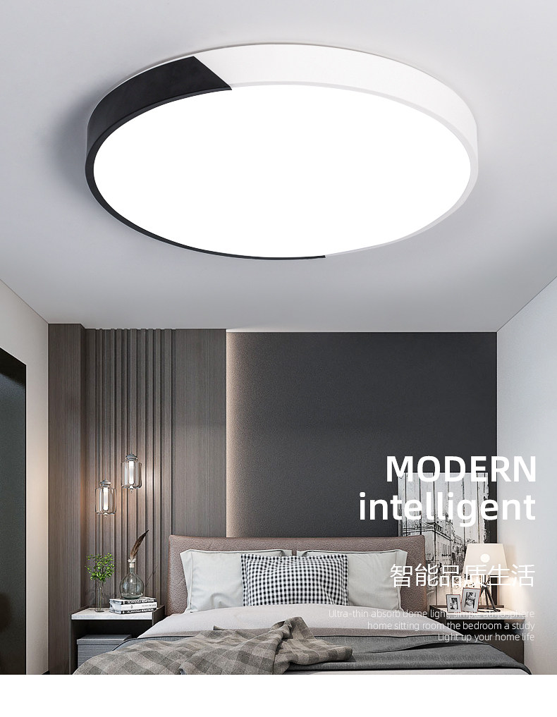 LED吸顶灯圆形黑白拼色客厅灯简约卧室灯餐厅书房灯
