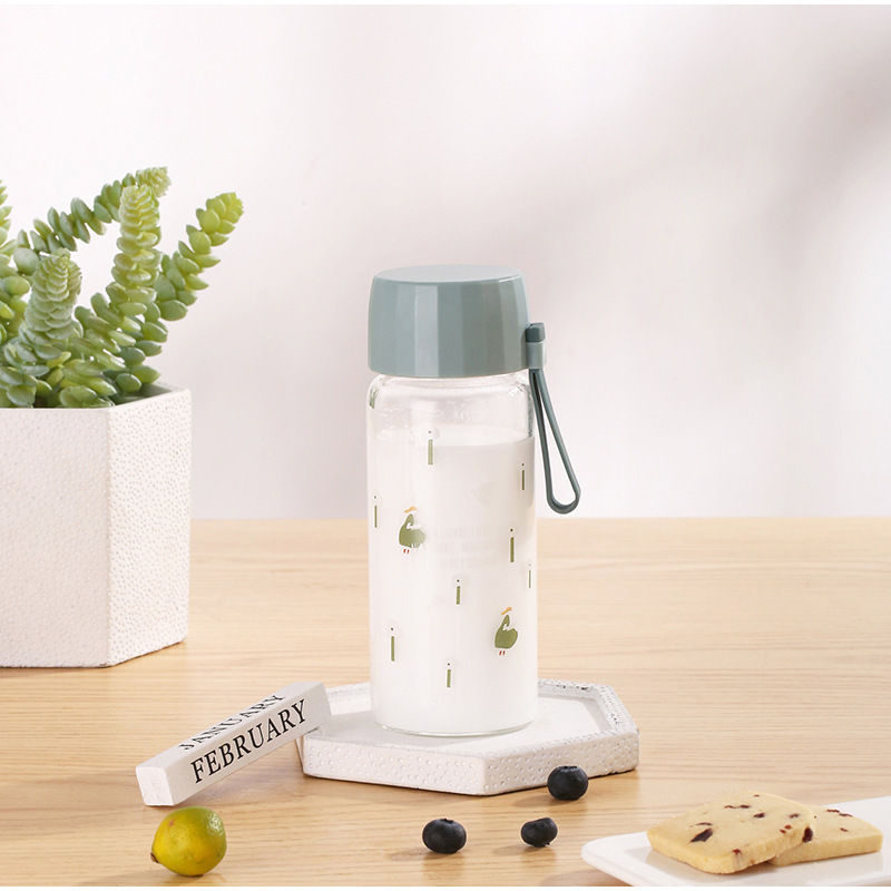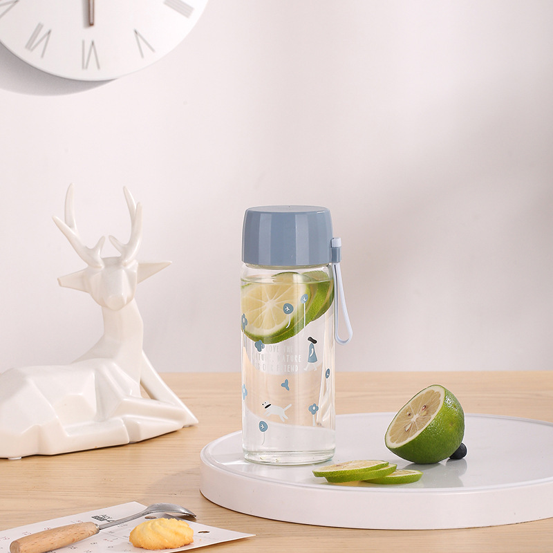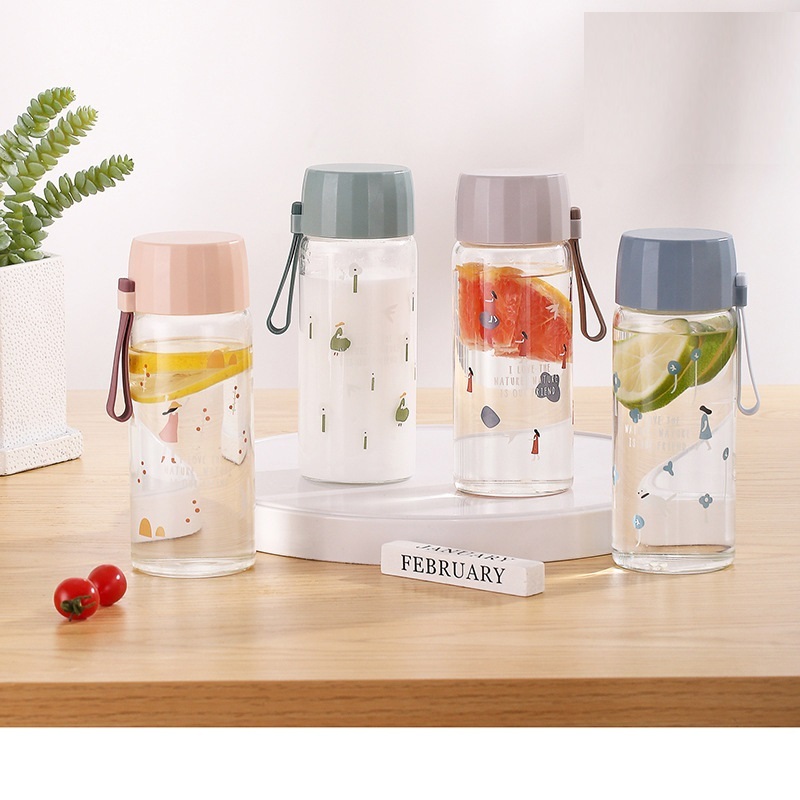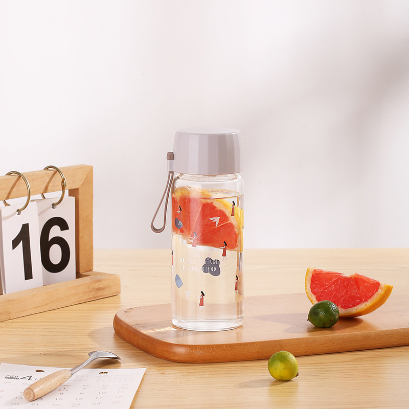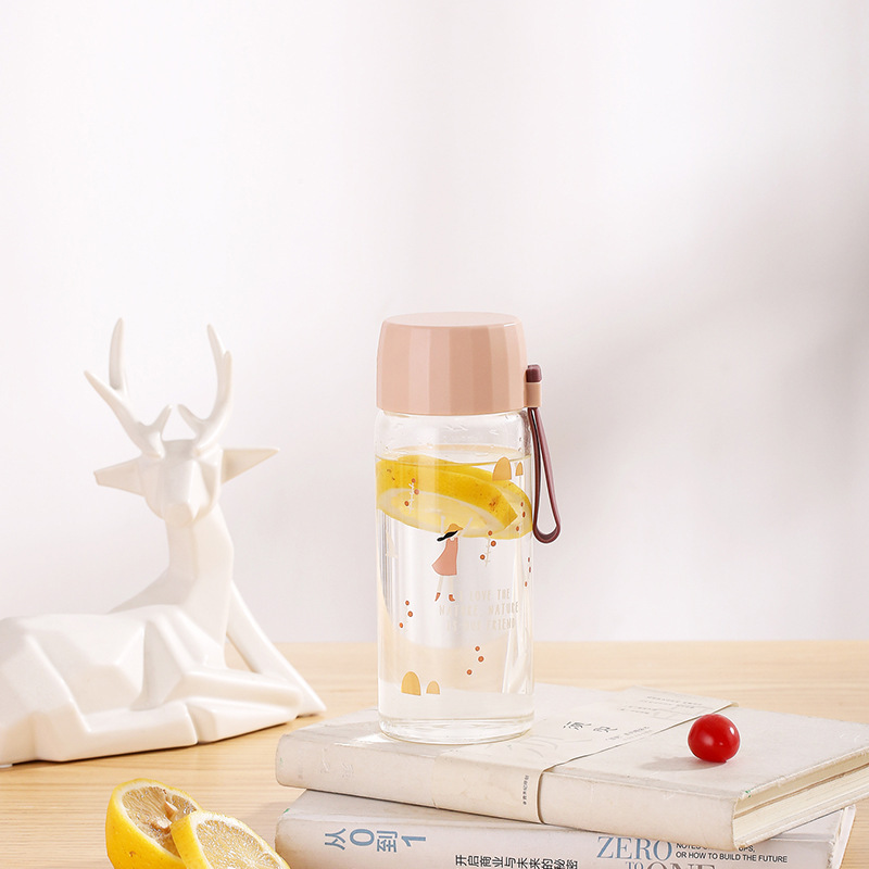 田园女孩简约高硼硅玻璃杯带提绳便捷水杯子促销礼品杯