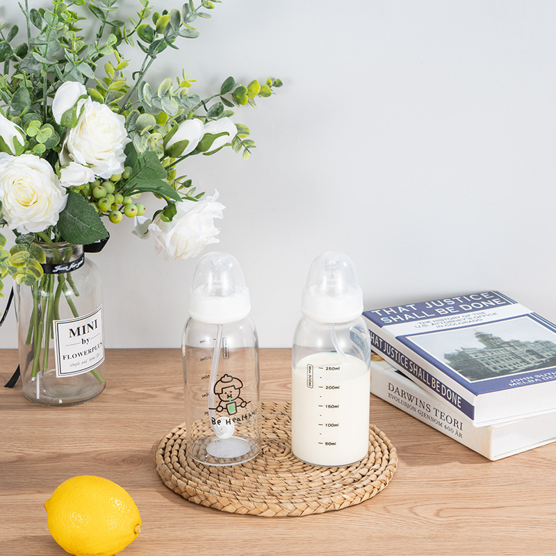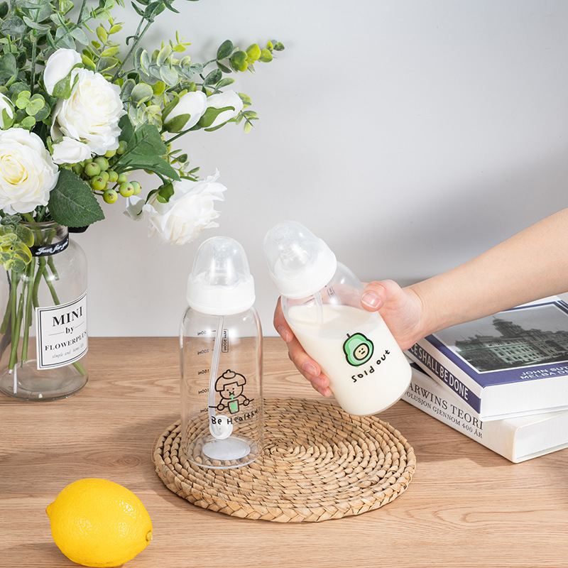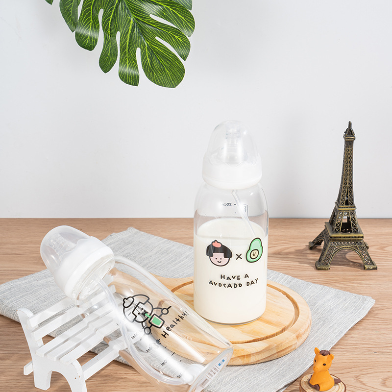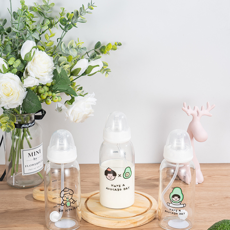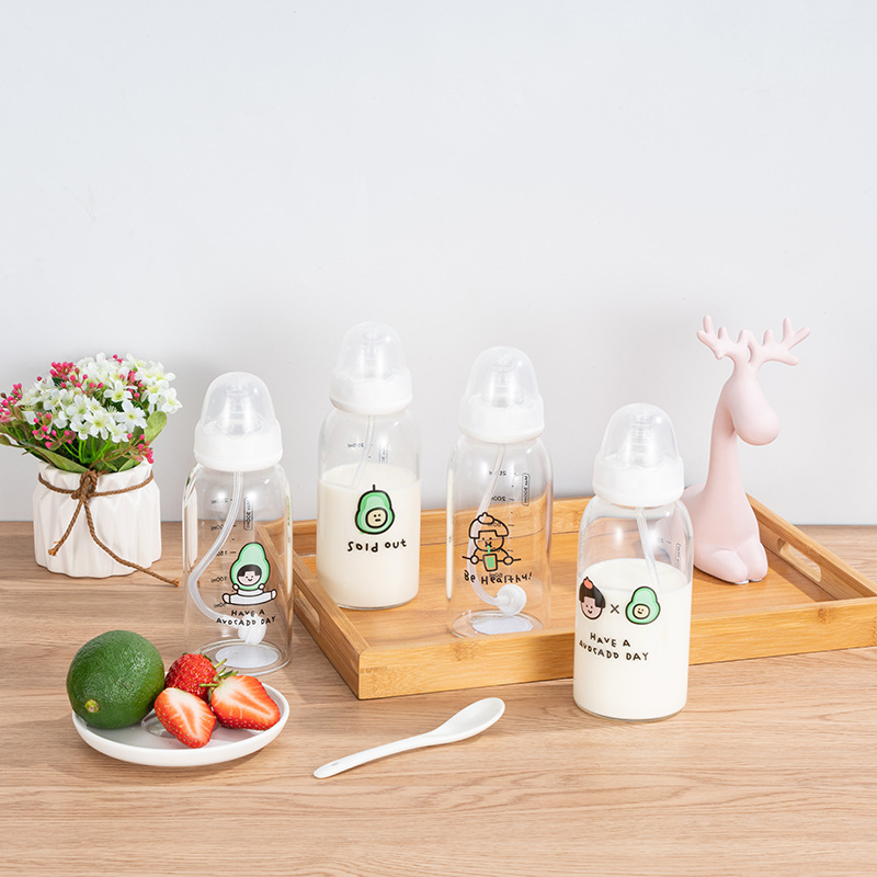 韩国创意高硼硅玻璃杯儿童吸管奶瓶水杯礼品杯子定制logo