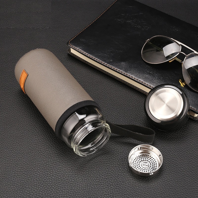 高硼硅透明水杯布套创意礼品杯商务便携车载杯可定制LOGO