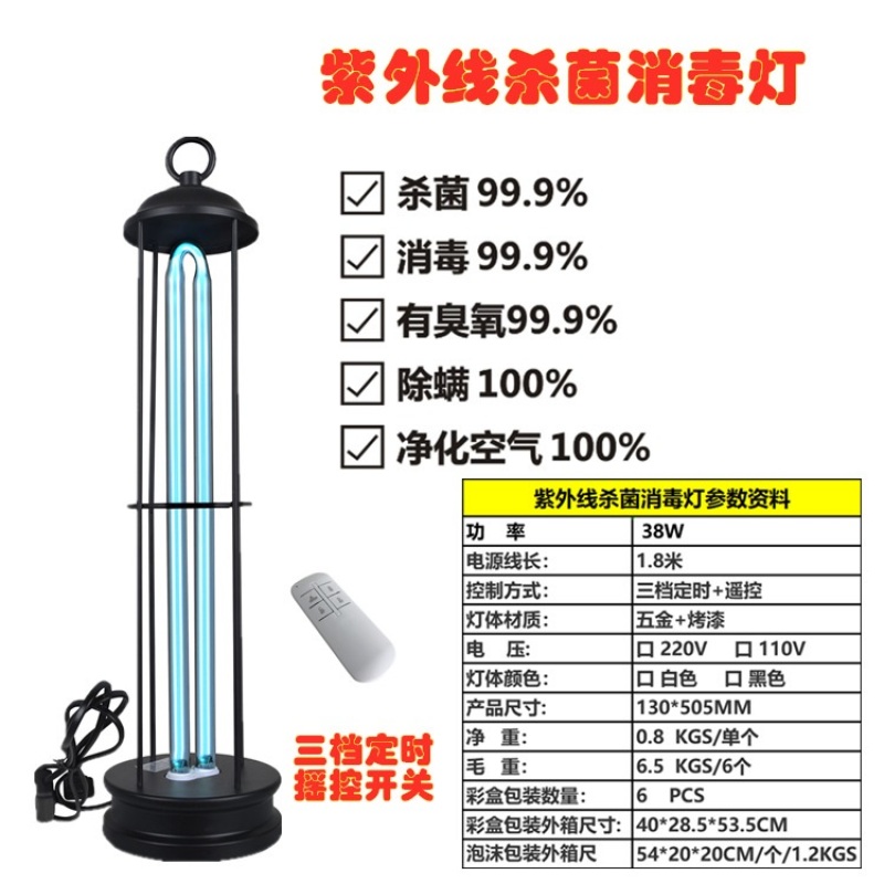 人体感应UVC紫外线杀菌消毒灯38W 60W 150W 110V 220V 除螨可移动