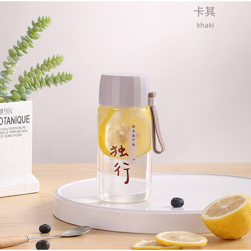单层高硼硅水杯韩版简约玻璃杯带提手户外便携杯子可定制LOGO