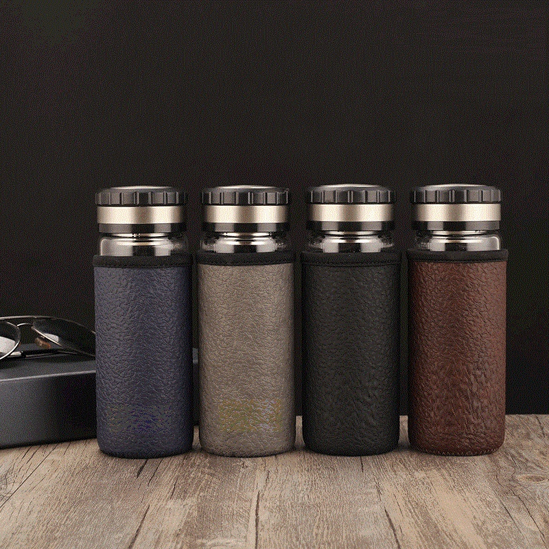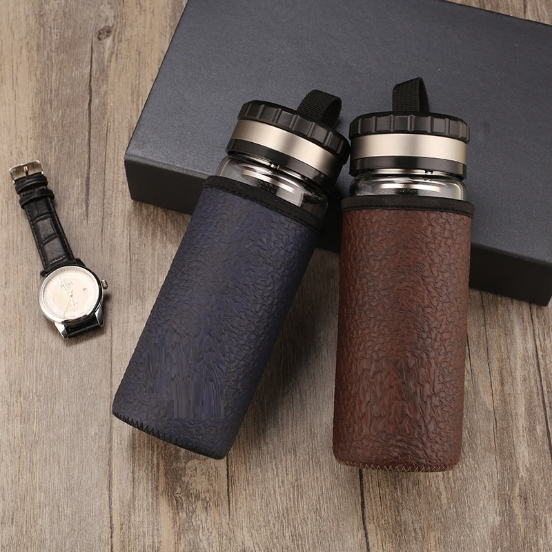 双层带盖便携隔热玻璃水杯大容量玻璃杯可定制LOGO