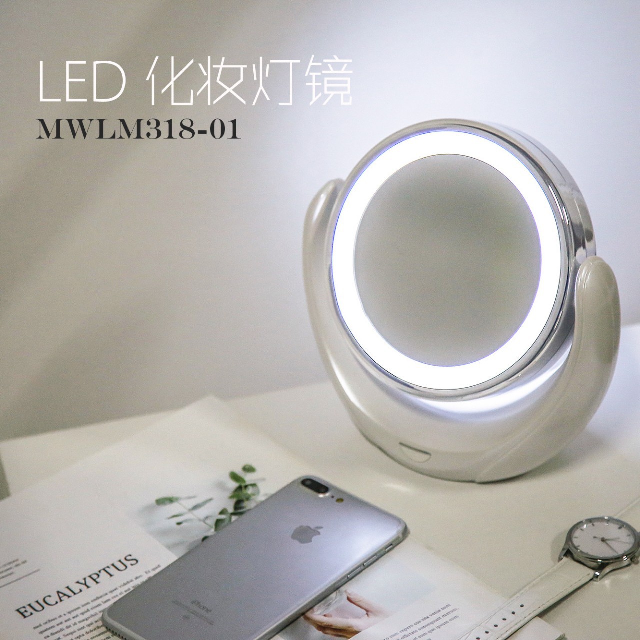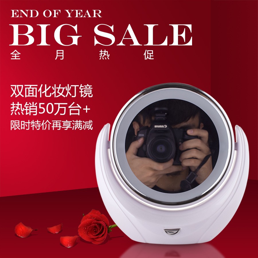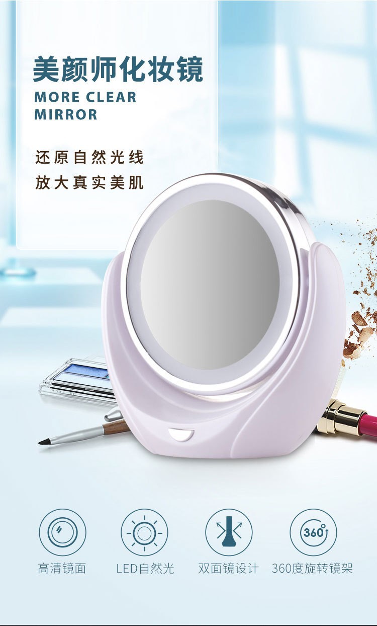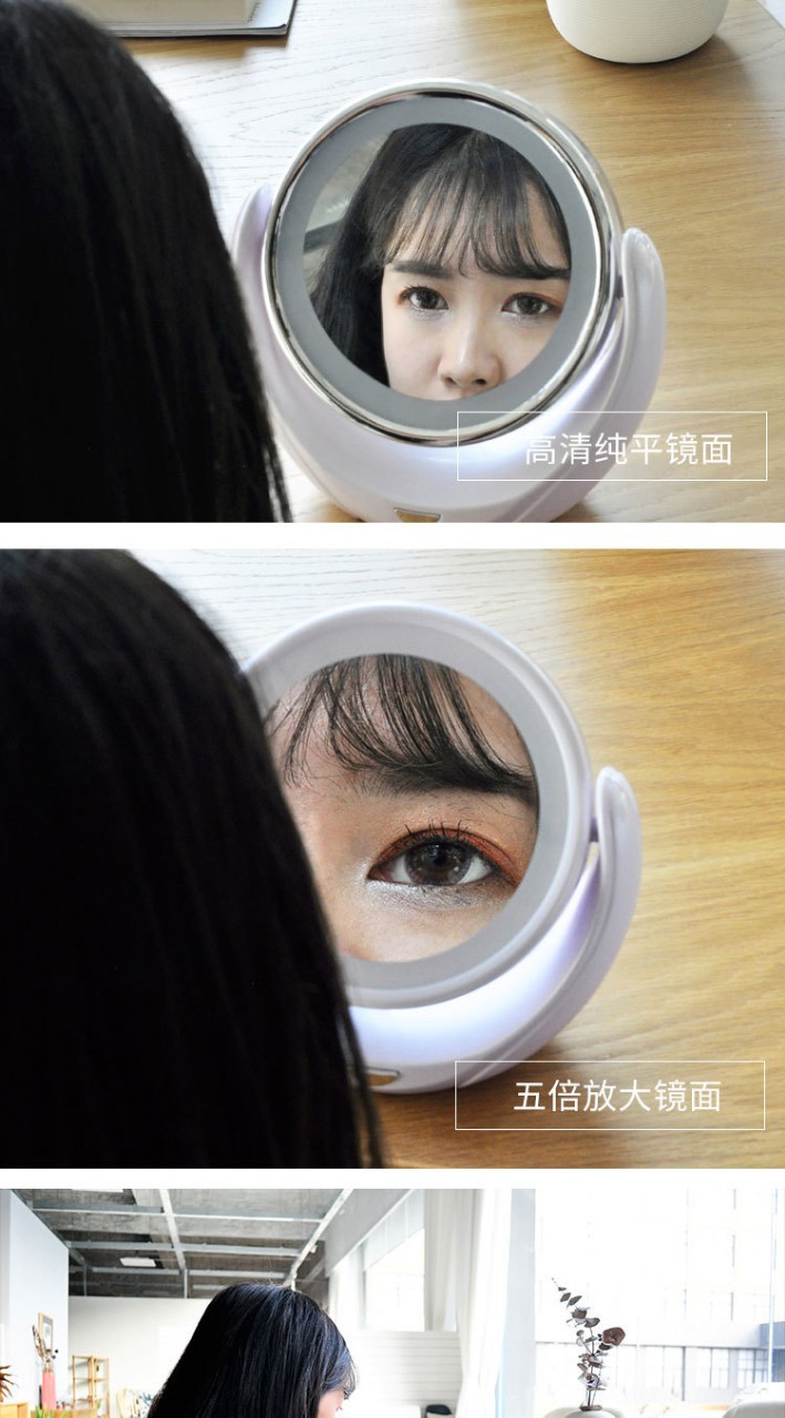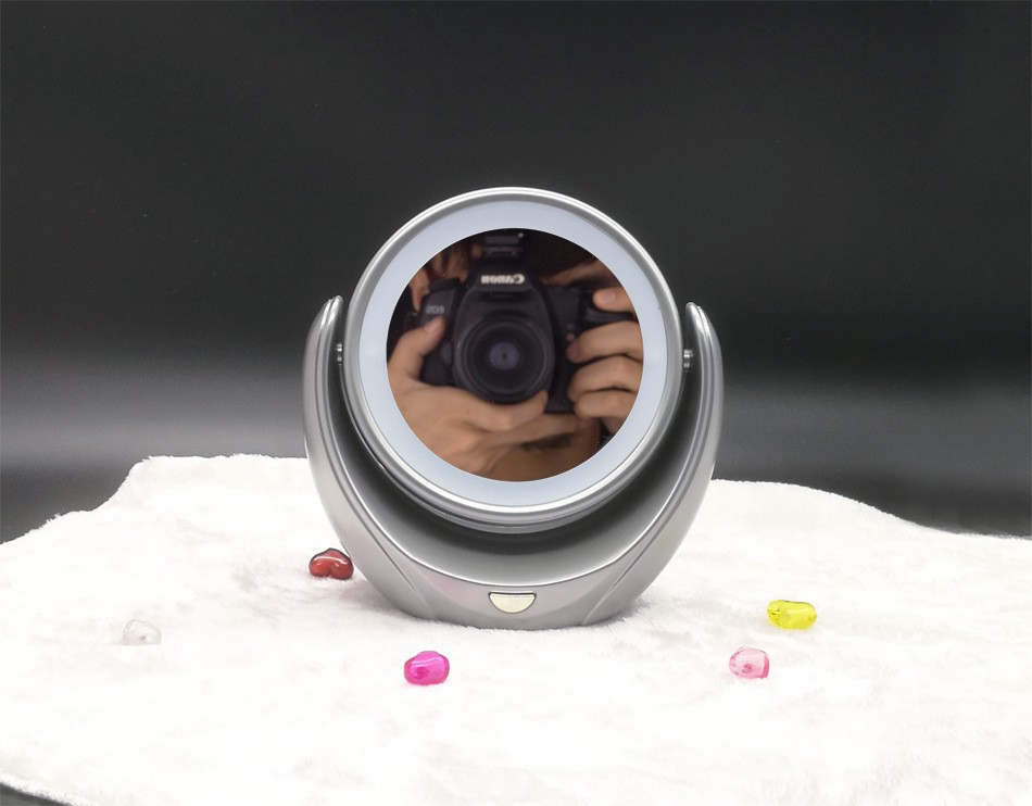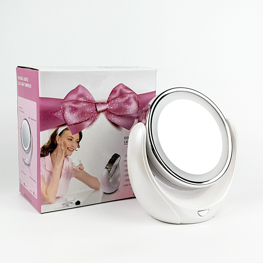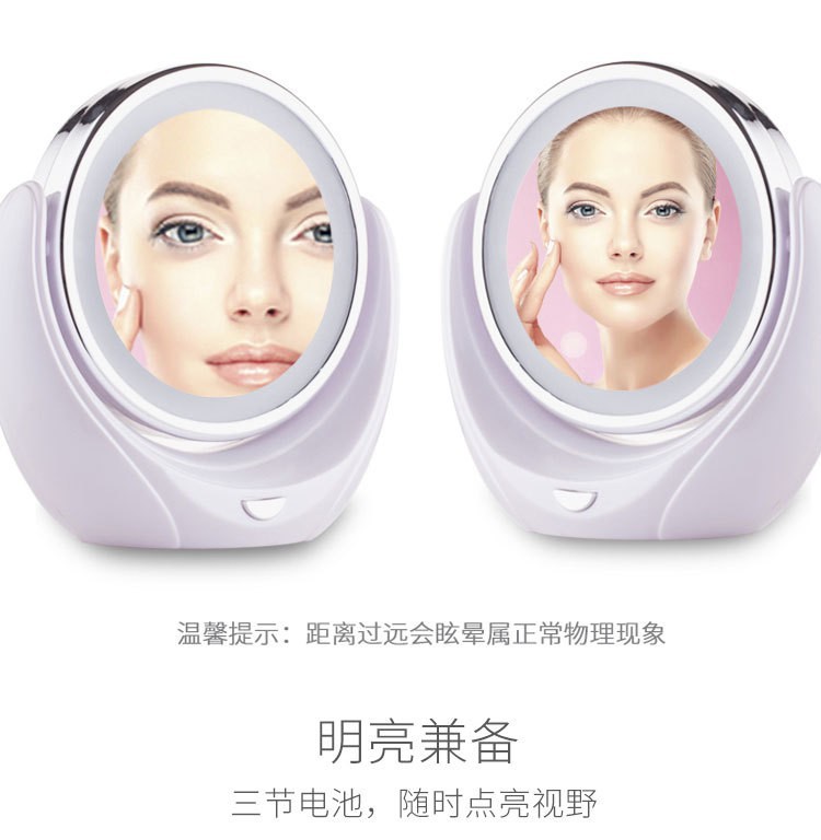 创意双面五倍放大可旋转台式带灯镜子化妆镜LED 化妆镜
