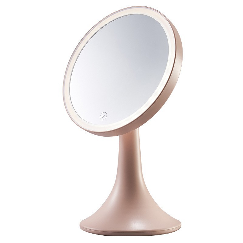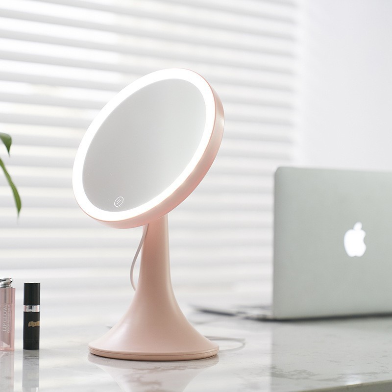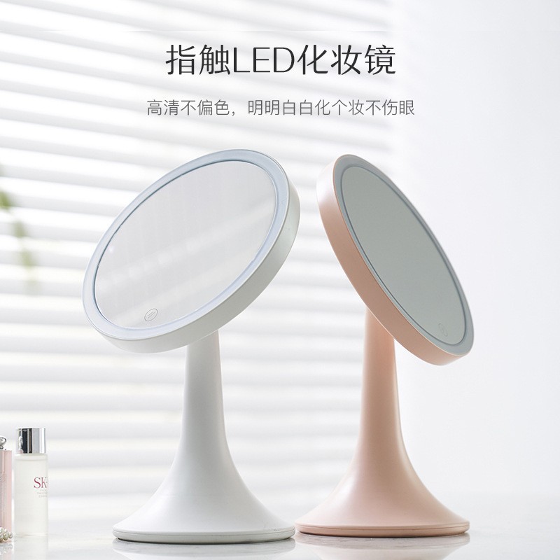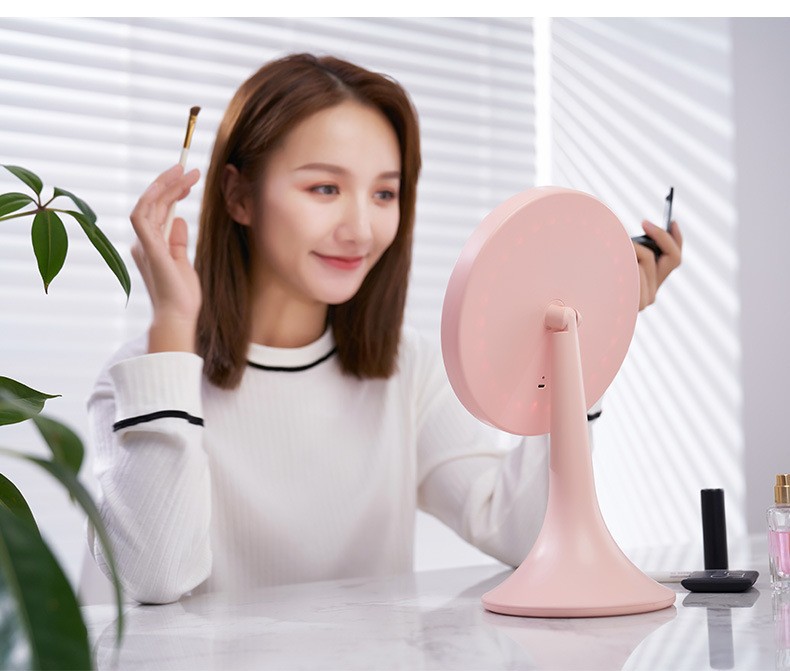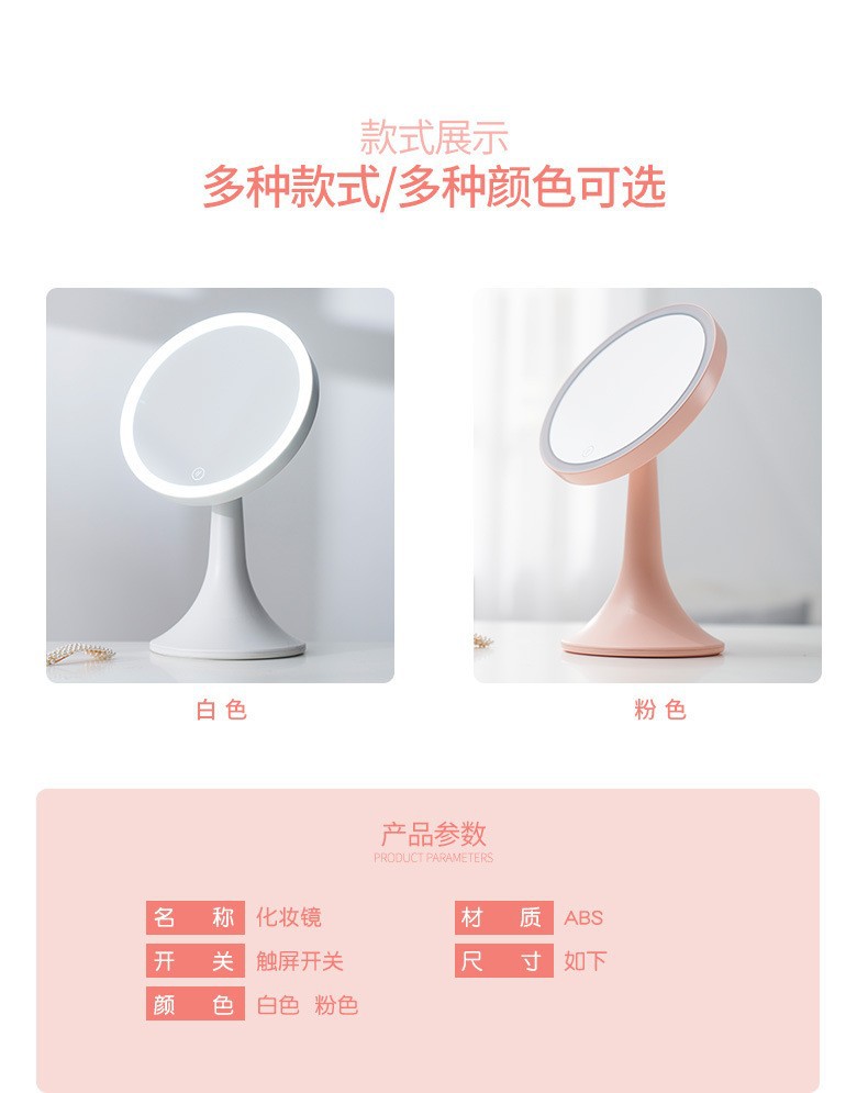 led灯化妆镜桌面圆形带灯梳妆镜立式单面补光美妆镜
