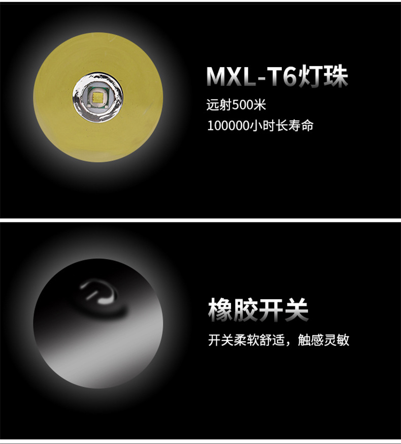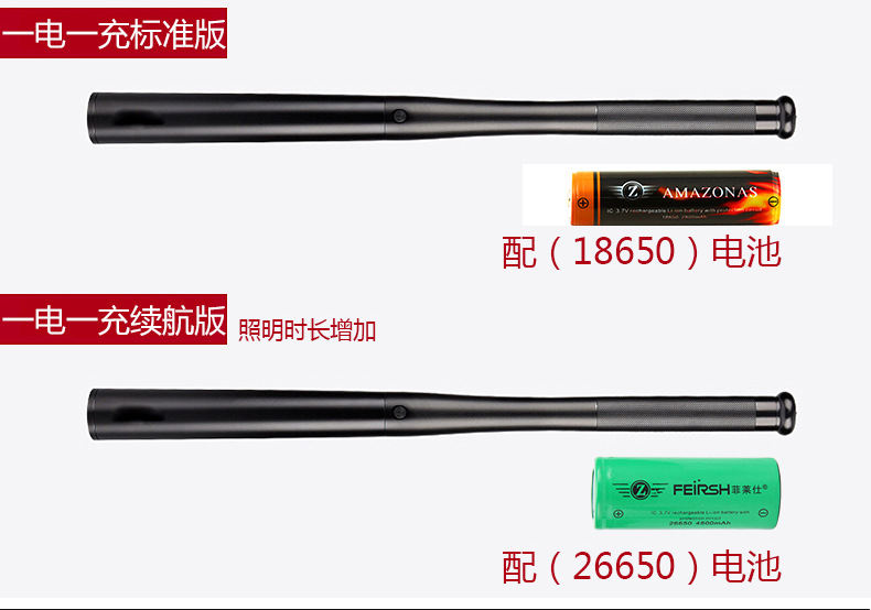 led充电强光手电筒T6棒球 多功能车载安全锤户外防身狼牙