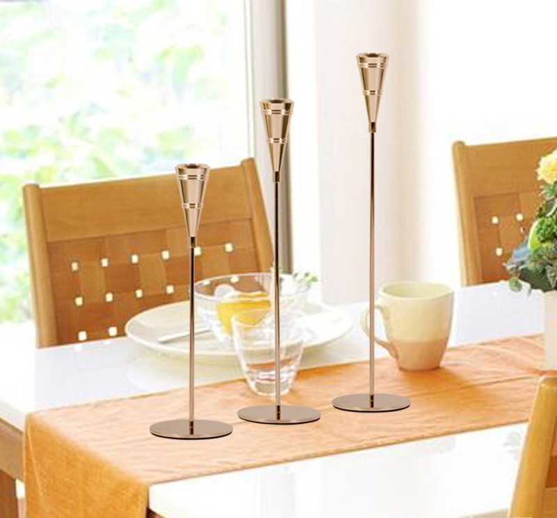 烛台 简约金色家居浪漫烛光晚餐铝件烛台摆件