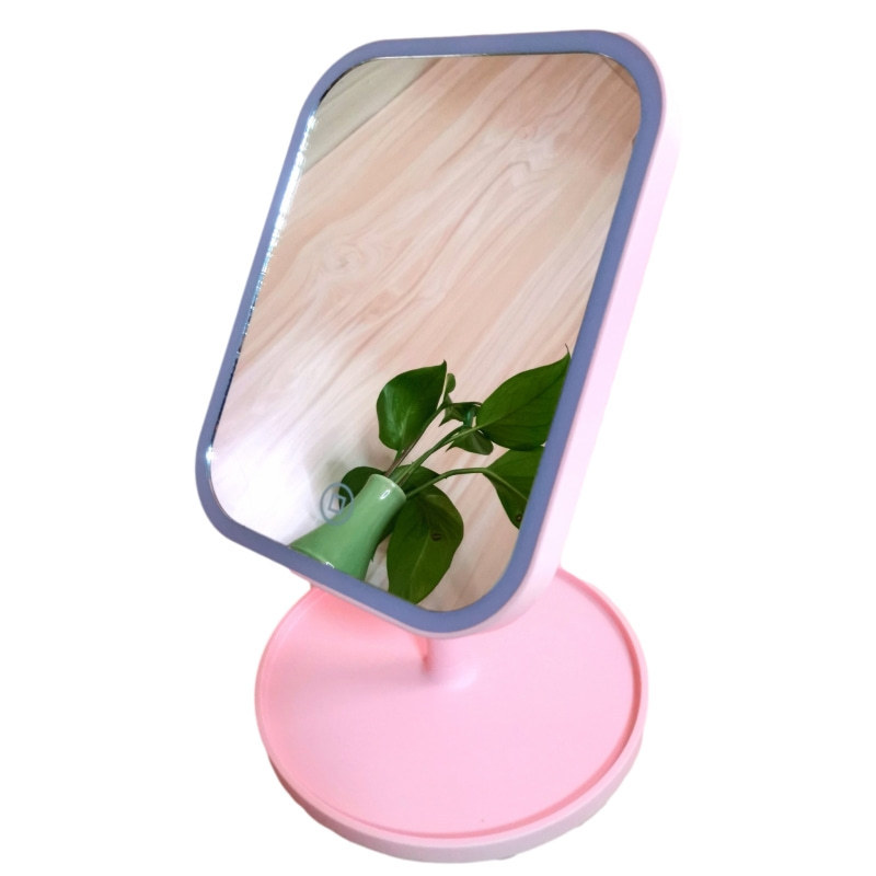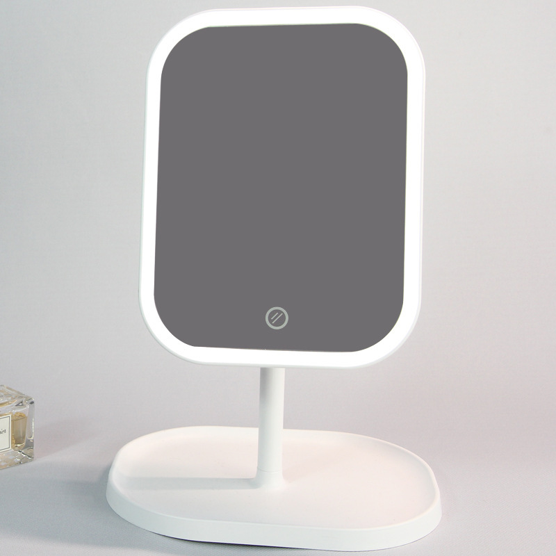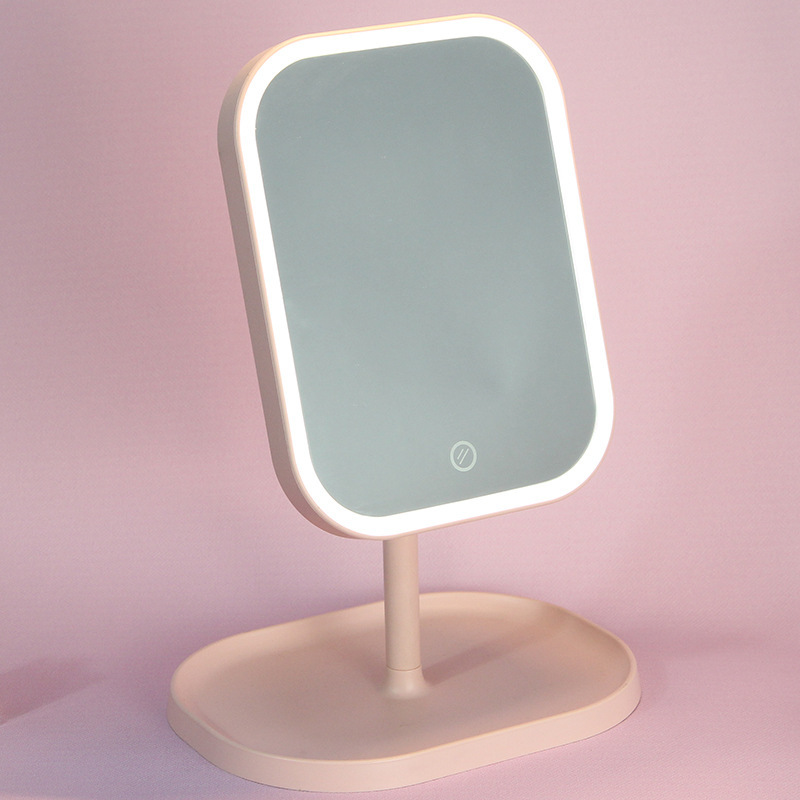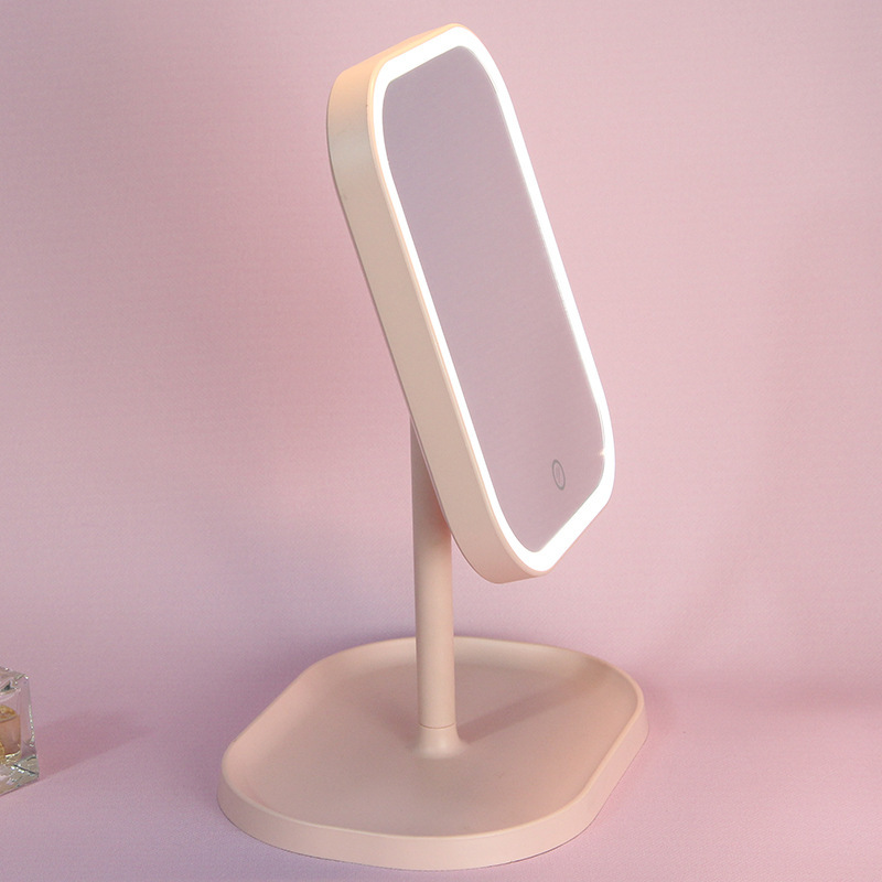 跨境新款便携台灯补妆镜带灯镜子 台式可充电梳妆镜方形