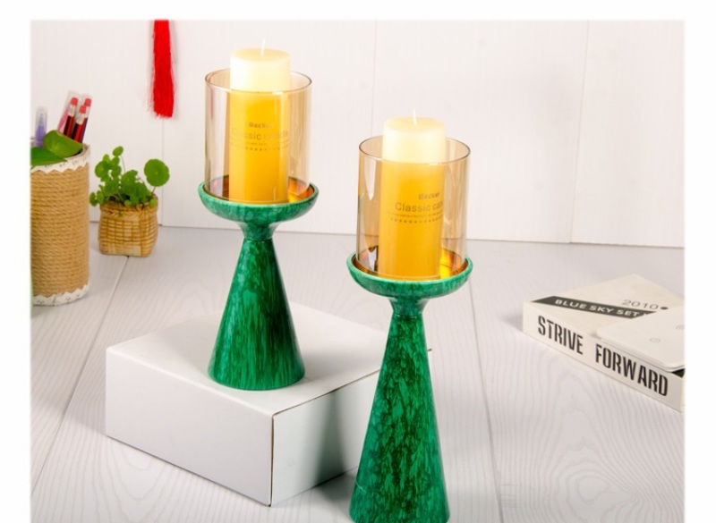蜡烛台浪漫餐桌欧式水转印烛台玻璃摆件