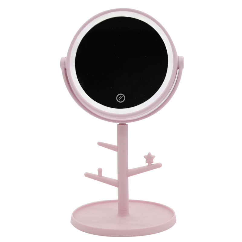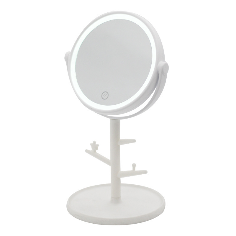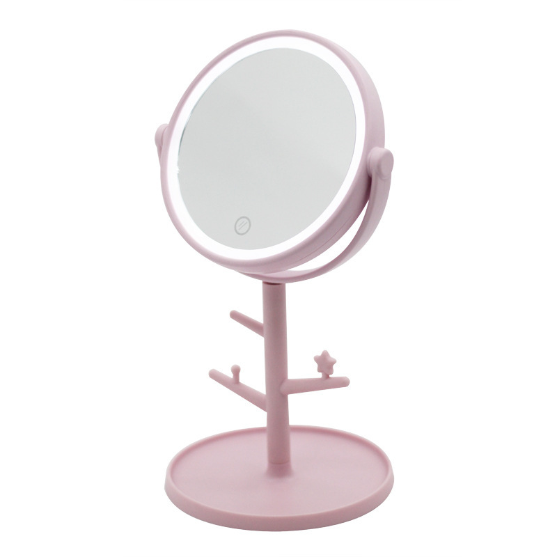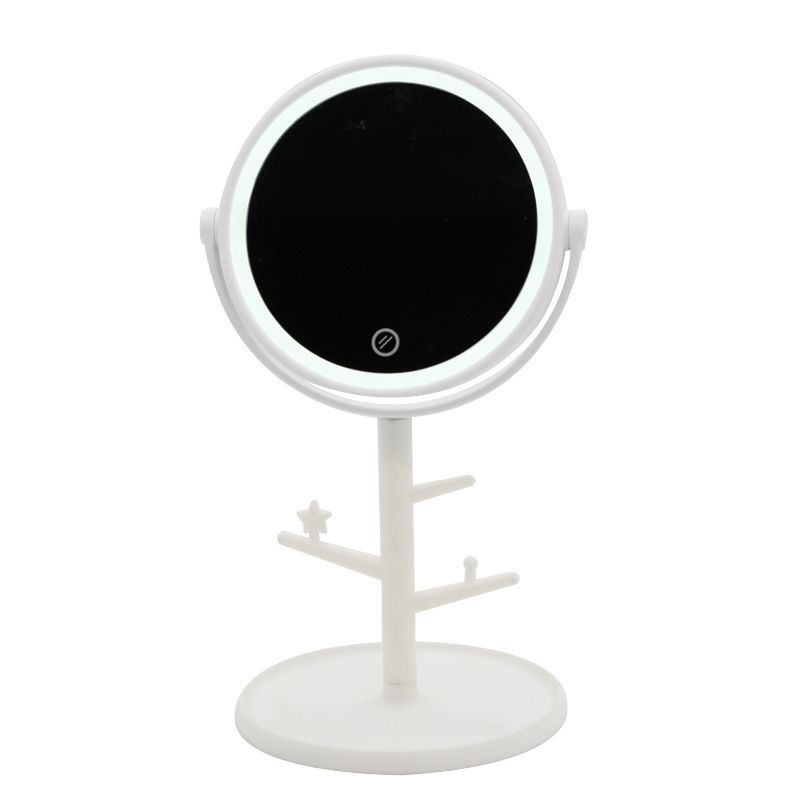 智能高清旋转带灯镜子 创意多功能台式LED化妆镜子托盘化妆小镜子
