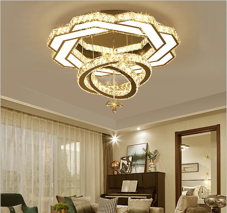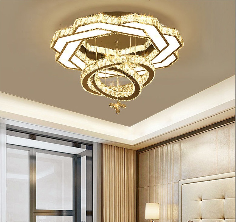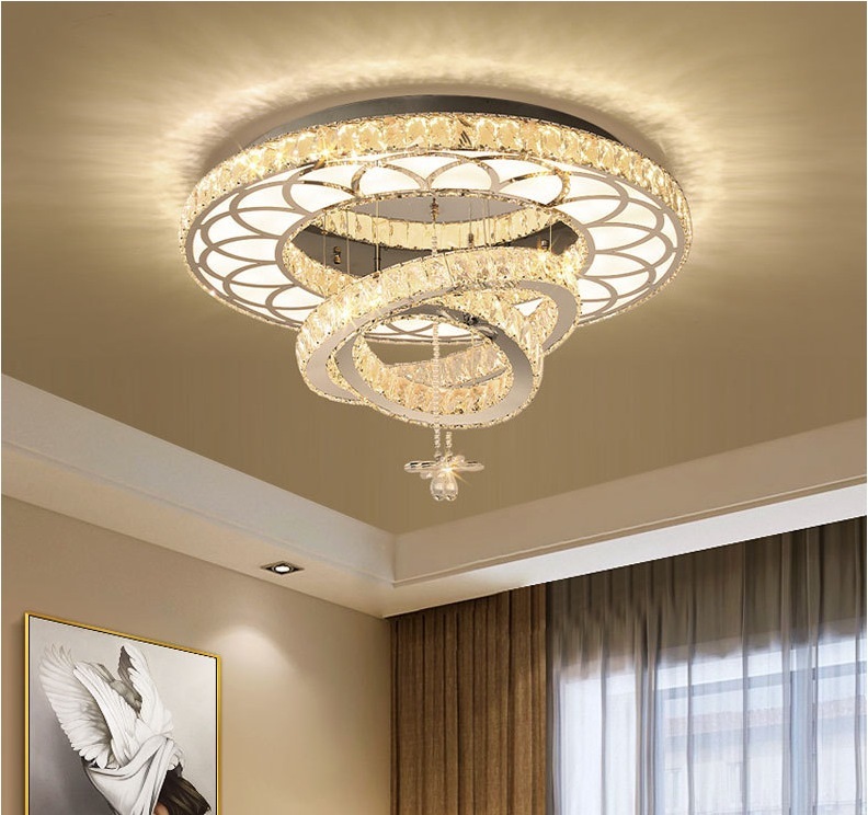 水晶灯客厅吸顶灯轻奢led语音控制 灯具卧室灯圆形吸顶灯