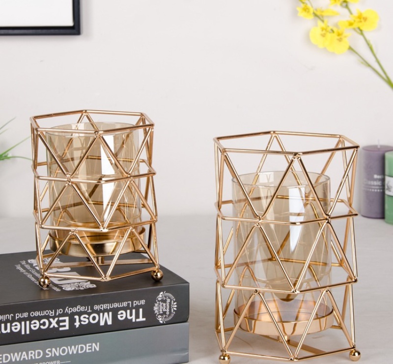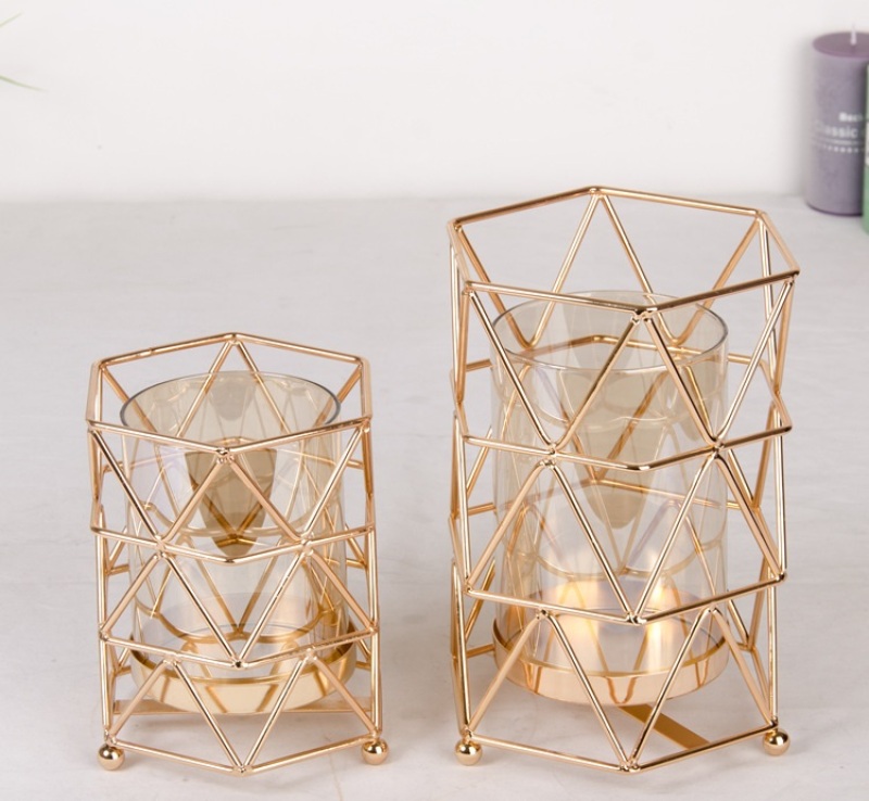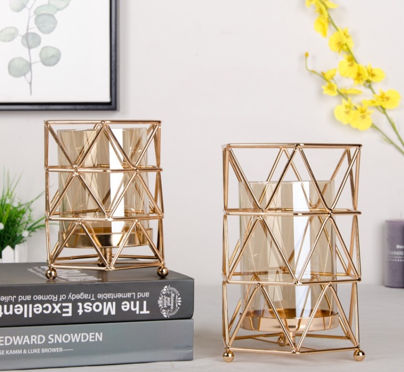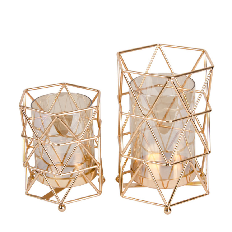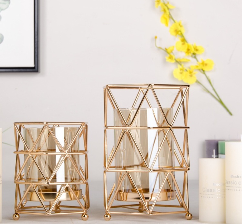 北欧轻奢蜡烛台 金色铁艺烛台 玫瑰金欧式浪漫蜡烛杯 餐桌摆件