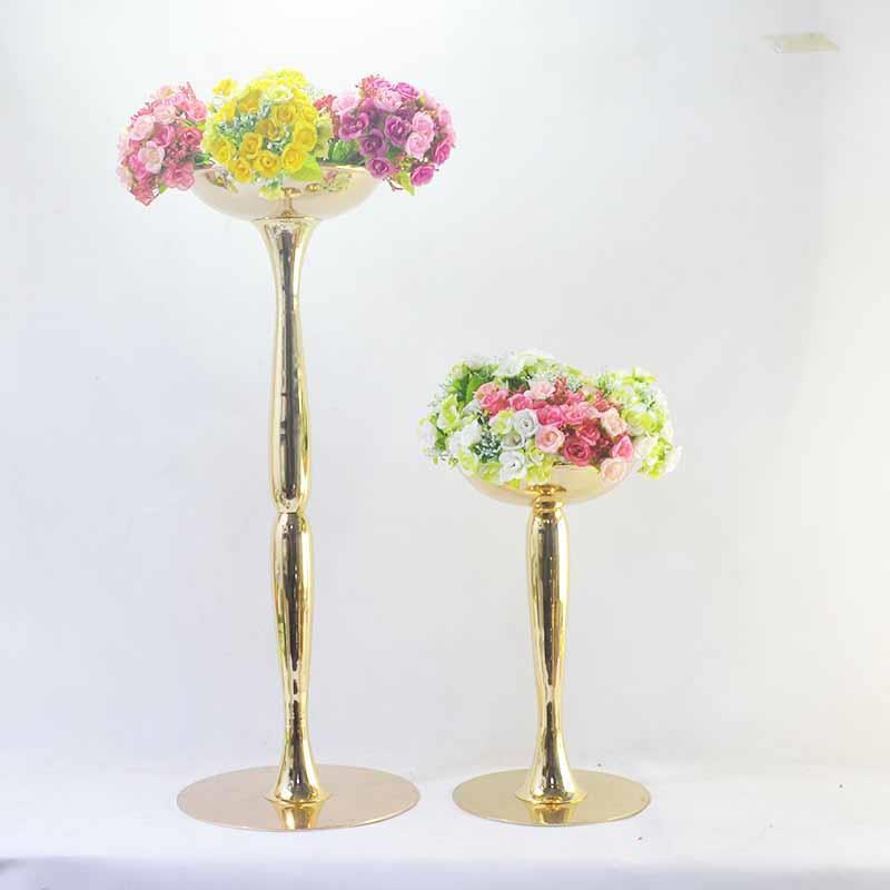 电镀金属花器T台路引插花道具婚庆布置装饰65CM高花盘