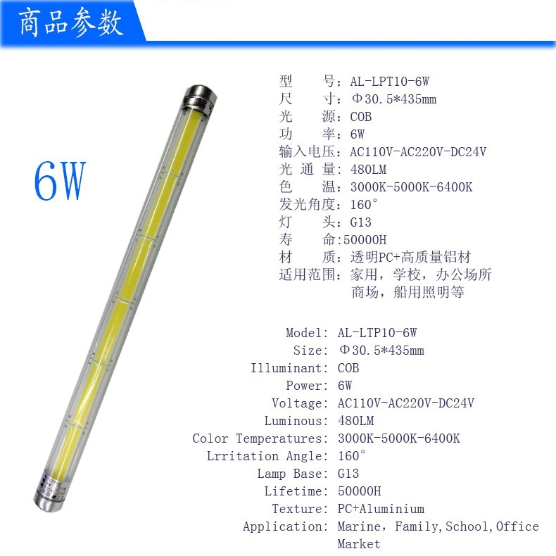 T10 6w Cob led灯管 铝塑日光灯船舶灯管