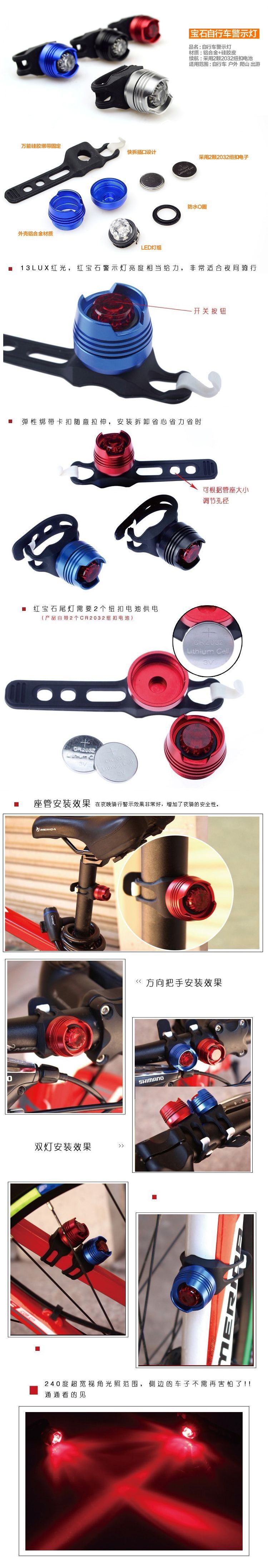 016自行车尾灯铝合金警示灯红宝石镜面1300烛光跨境配件