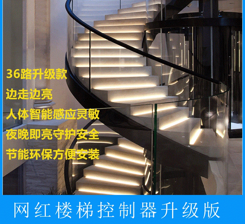 感应楼梯灯踏步编程网红跑马灯台阶灯别墅阶梯灯隐藏嵌入LED灯带
