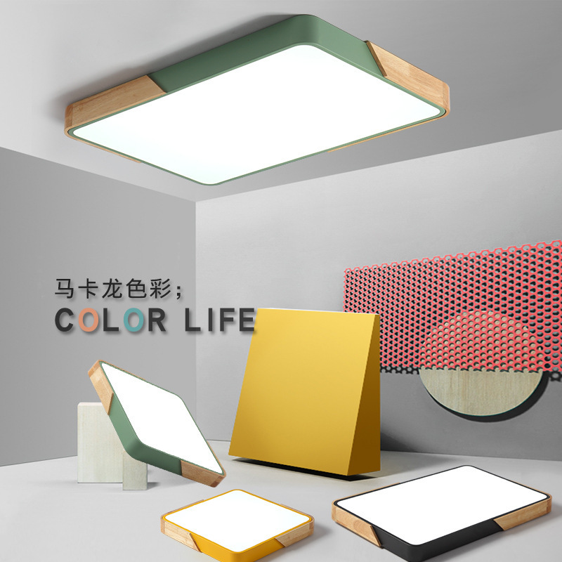 北欧客厅吸顶灯长方形马卡龙彩色灯饰卧室餐厅灯